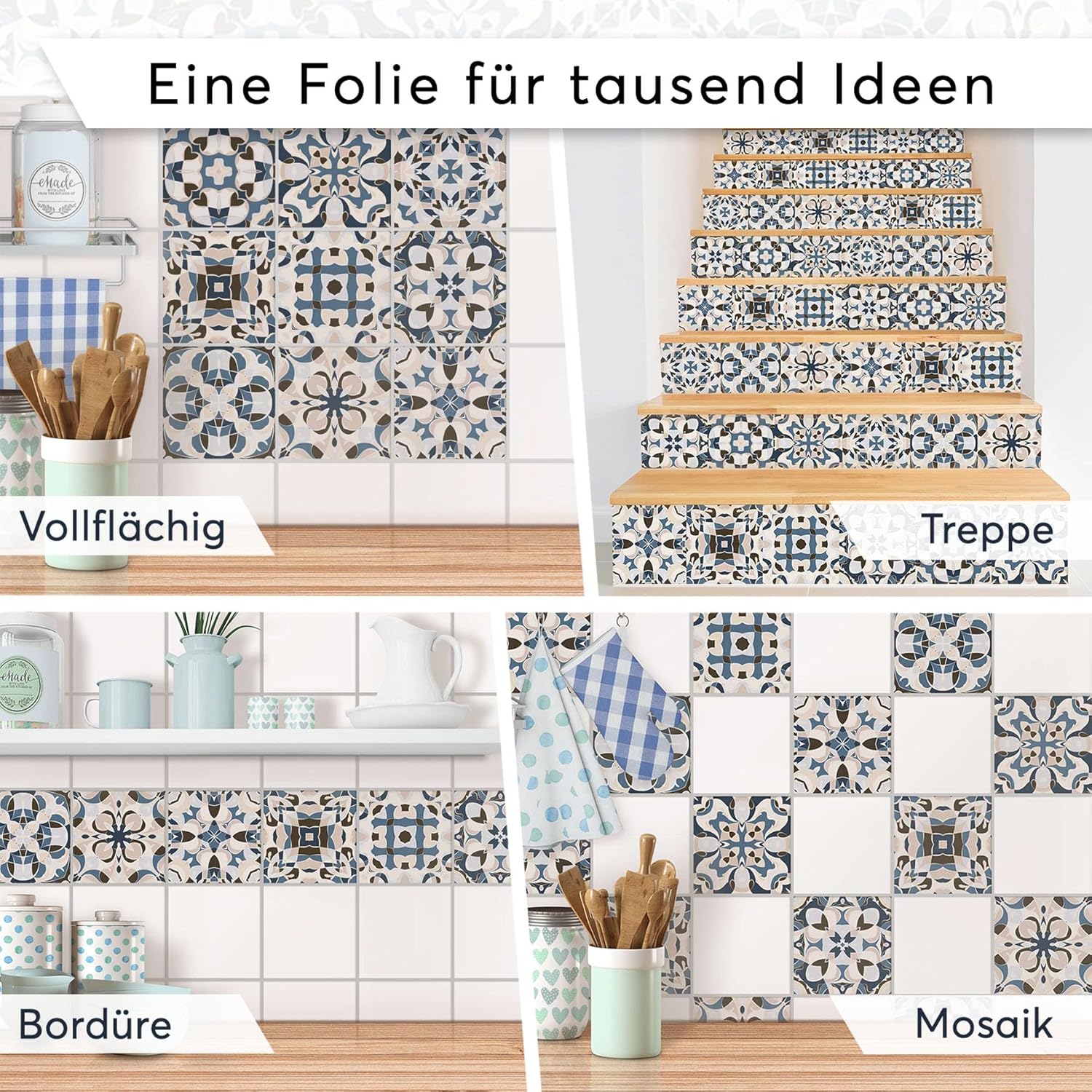 • HOCHWERTIGE VERARBEITUNG - Passgenauer Zuschnitt, hochwertige Druckverfahren und beste Materialien zeichnen unsere Fliesensticker aus. 100% Zufriedenheitsgarantie mit unseren Klebefliesen!