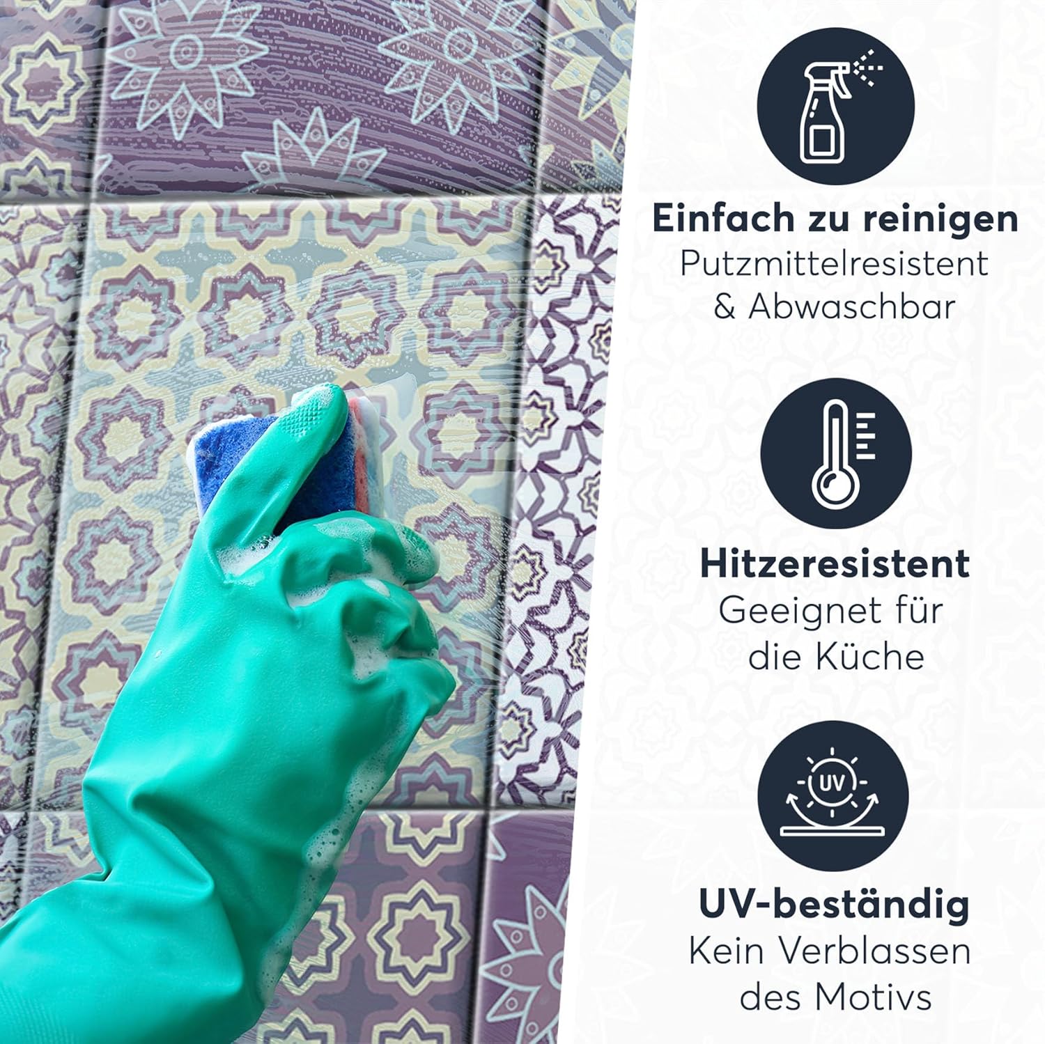 • HOCHWERTIGE VERARBEITUNG - Passgenauer Zuschnitt, hochwertige Druckverfahren und beste Materialien zeichnen unsere Fliesensticker aus. 100% Zufriedenheitsgarantie mit unseren Klebefliesen!