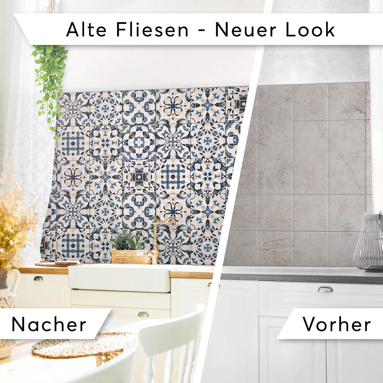• QUALITÄT MADE IN GERMANY - [SET MIT 72 FLIESENFOLIEN JE 15x15 CM] - Original CREATISTO Fliesenaufkleber, entwickelt für Fliesen in Küche, Bad und WC. In Deutschland gefertigt mit hochwertigen und umweltfreundlichen Materialien!