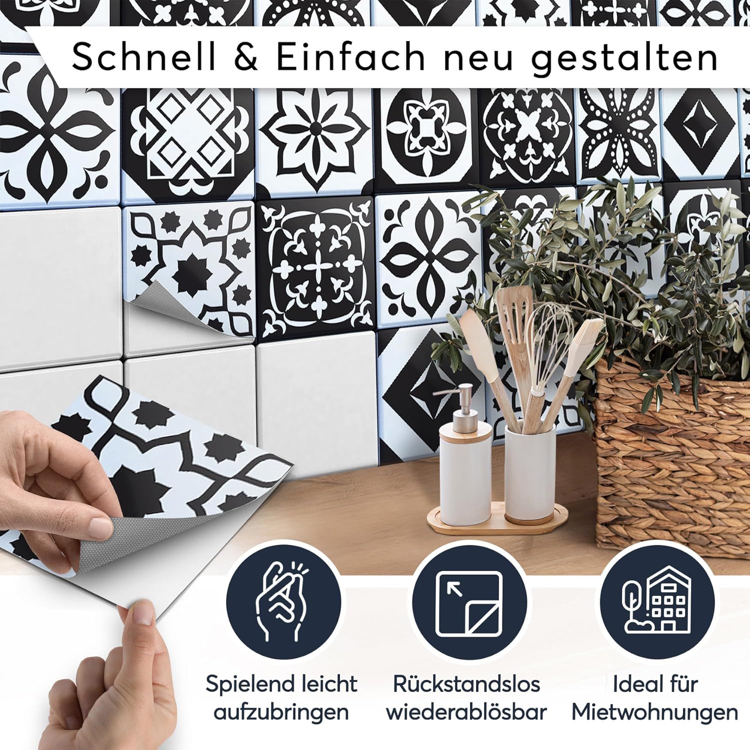 • HOCHWERTIGE VERARBEITUNG - Passgenauer Zuschnitt, hochwertige Druckverfahren und beste Materialien zeichnen unsere Fliesensticker aus. 100% Zufriedenheitsgarantie mit unseren Klebefliesen!