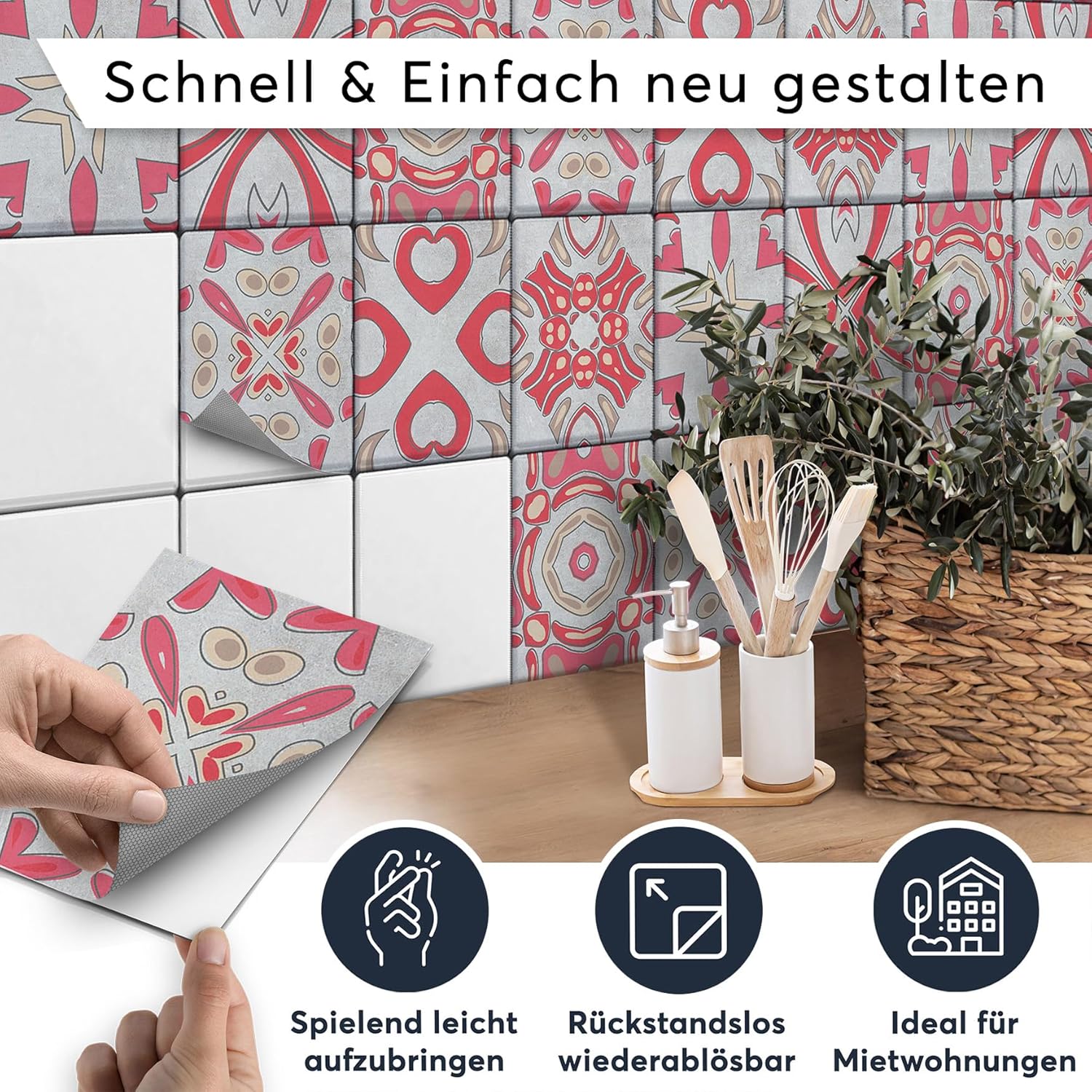 • HOCHWERTIGE VERARBEITUNG - Passgenauer Zuschnitt, hochwertige Druckverfahren und beste Materialien zeichnen unsere Fliesensticker aus. 100% Zufriedenheitsgarantie mit unseren Klebefliesen!