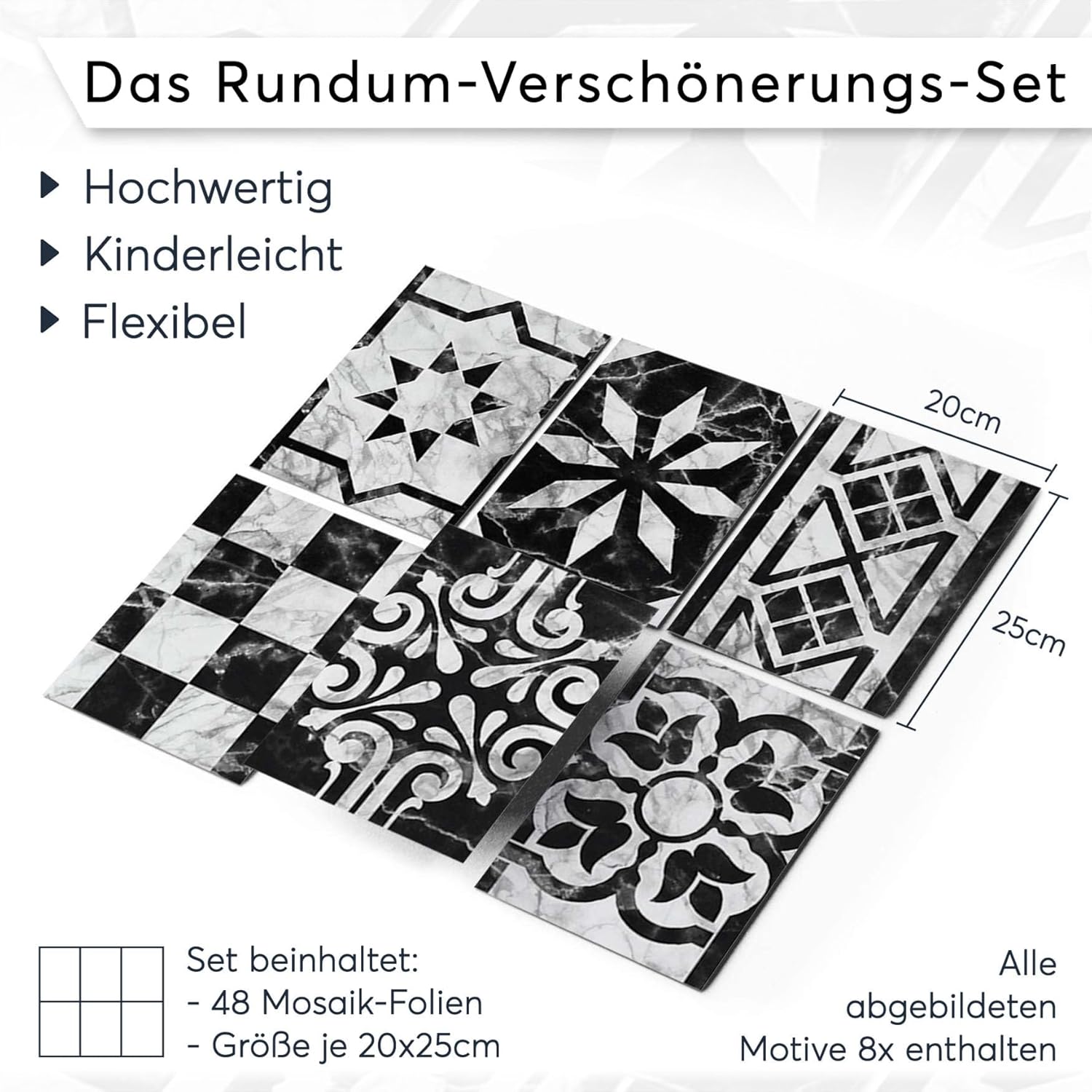 • QUALITÄT MADE IN GERMANY - [SET MIT 48 FLIESENFOLIEN JE 20x25 CM] - Original CREATISTO Fliesenaufkleber, entwickelt für Fliesen in Küche, Bad und WC. In Deutschland gefertigt mit hochwertigen und umweltfreundlichen Materialien!