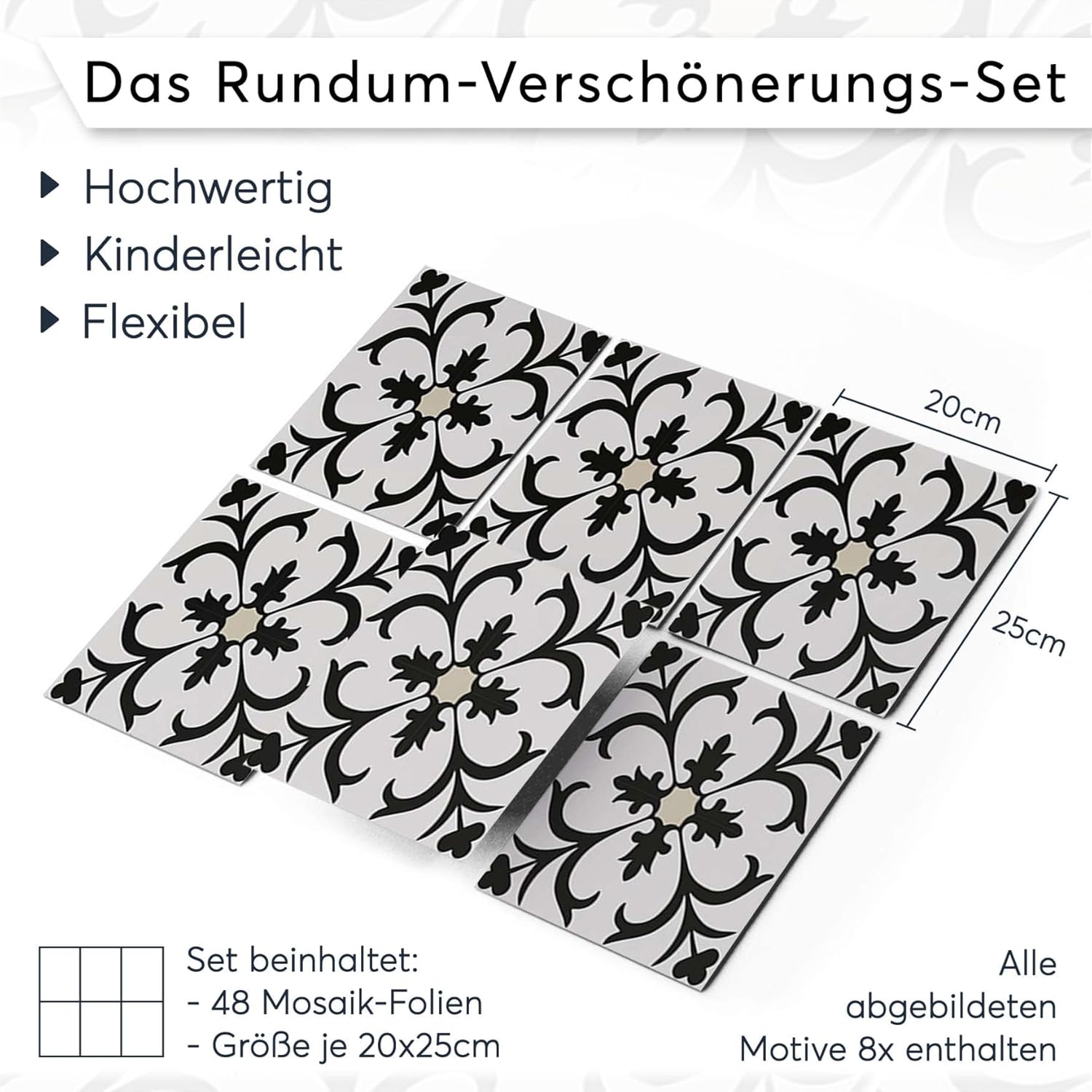 • QUALITÄT MADE IN GERMANY - [SET MIT 48 FLIESENFOLIEN JE 20x25 CM] - Original CREATISTO Fliesenaufkleber, entwickelt für Fliesen in Küche, Bad und WC. In Deutschland gefertigt mit hochwertigen und umweltfreundlichen Materialien!