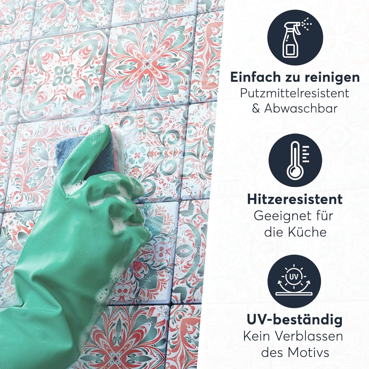 Sticker-Fliesen Dekor I Fliesen-Klebefolie - selbsklebend - Fliesenspiegel aufpeppen I Kachel-Aufkle