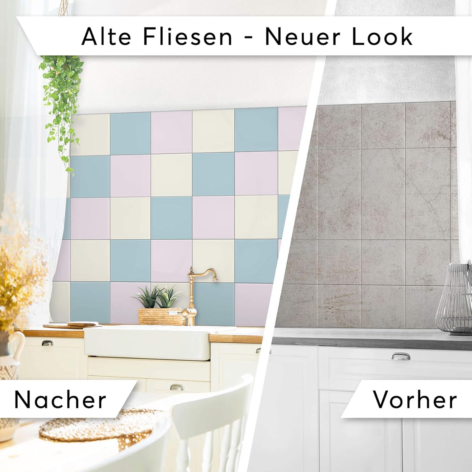 • HOCHWERTIGE VERARBEITUNG - Passgenauer Zuschnitt, hochwertige Druckverfahren und beste Materialien zeichnen unsere Fliesensticker aus. 100% Zufriedenheitsgarantie mit unseren Klebefliesen!