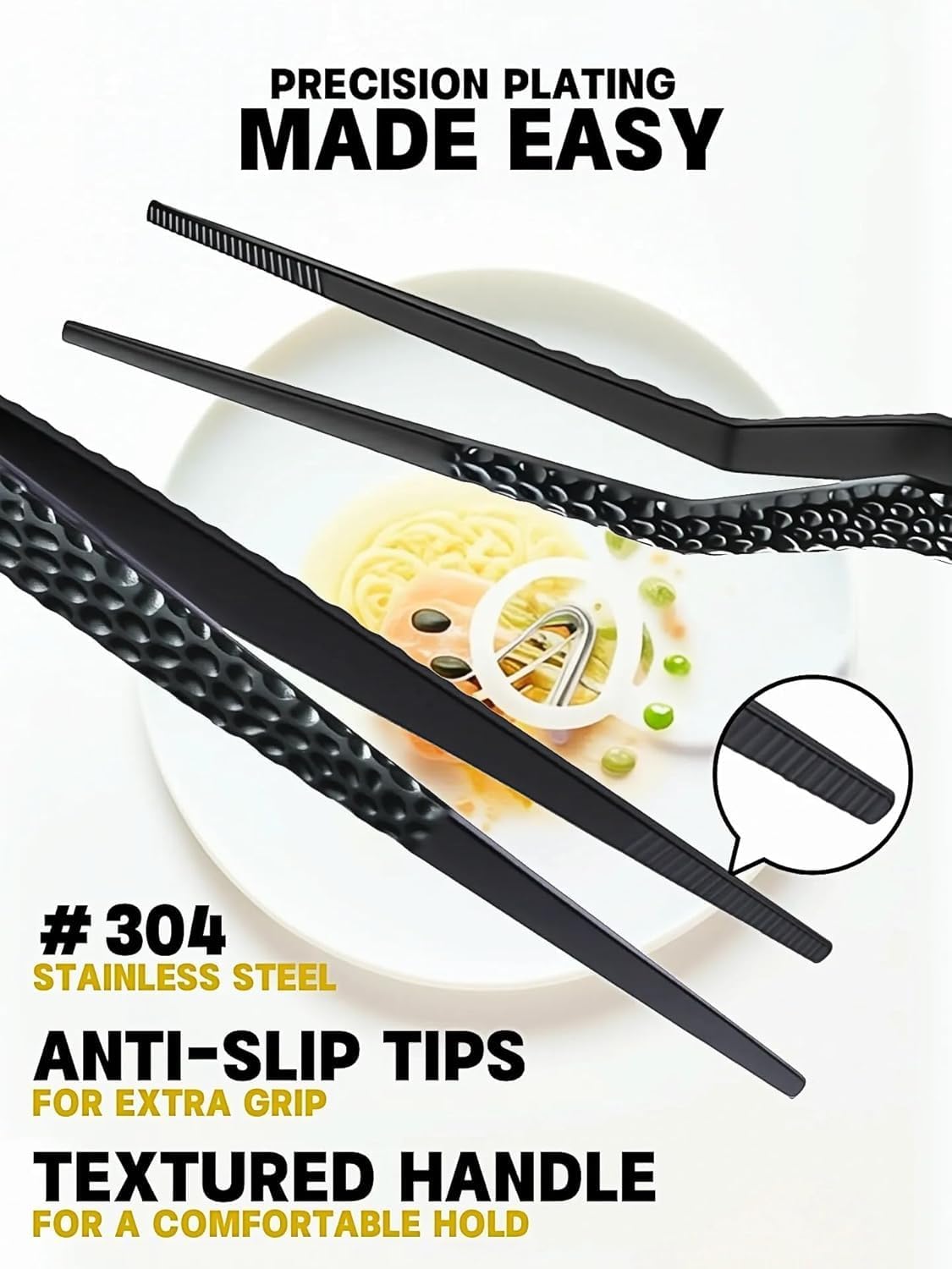 - Präzises Design: Die hochpräzise Pinzette ist für den professionellen Einsatz konzipiert und bietet eine nahtlose Bedienung, mit der Sie empfindliche Aufgaben mit Leichtigkeit bewältigen können. Egal, ob Sie diese Küchenpinzette für Teller oder