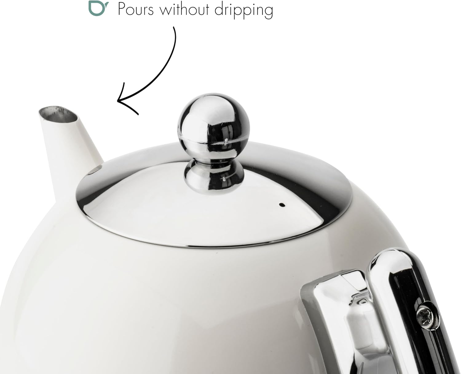 - Die speziell geformte Tülle des runden Teekessels erlaubt Ihnen ein tropffreies Einschenken