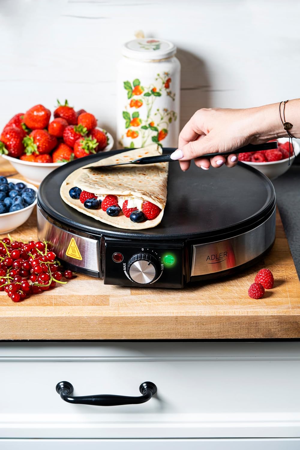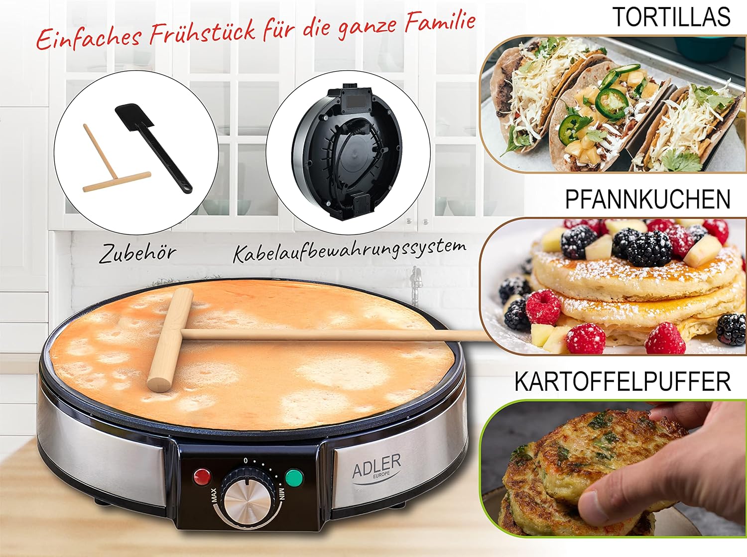 - 🥞 Schnelle Mahlzeit: Dieses Produkt erleichtert die Zubereitung leckerer und schneller Snacks wie Crêpes, American Pancakes, Galettes, Tortillas und Kartoffelpuffer. Im Handumdrehen bereiten Sie ein Frühstück, einen Nachmittagssnack oder einen Hauptgang zum Abendessen zu.