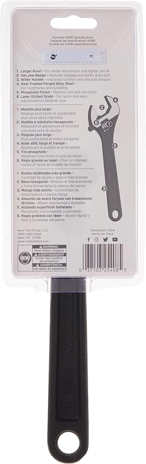 Crescent AT210VS 254mm Verstellbarer Einmaulschlüssel, Schwarz Phosphatierte Oberfläche 250mm, 250mm