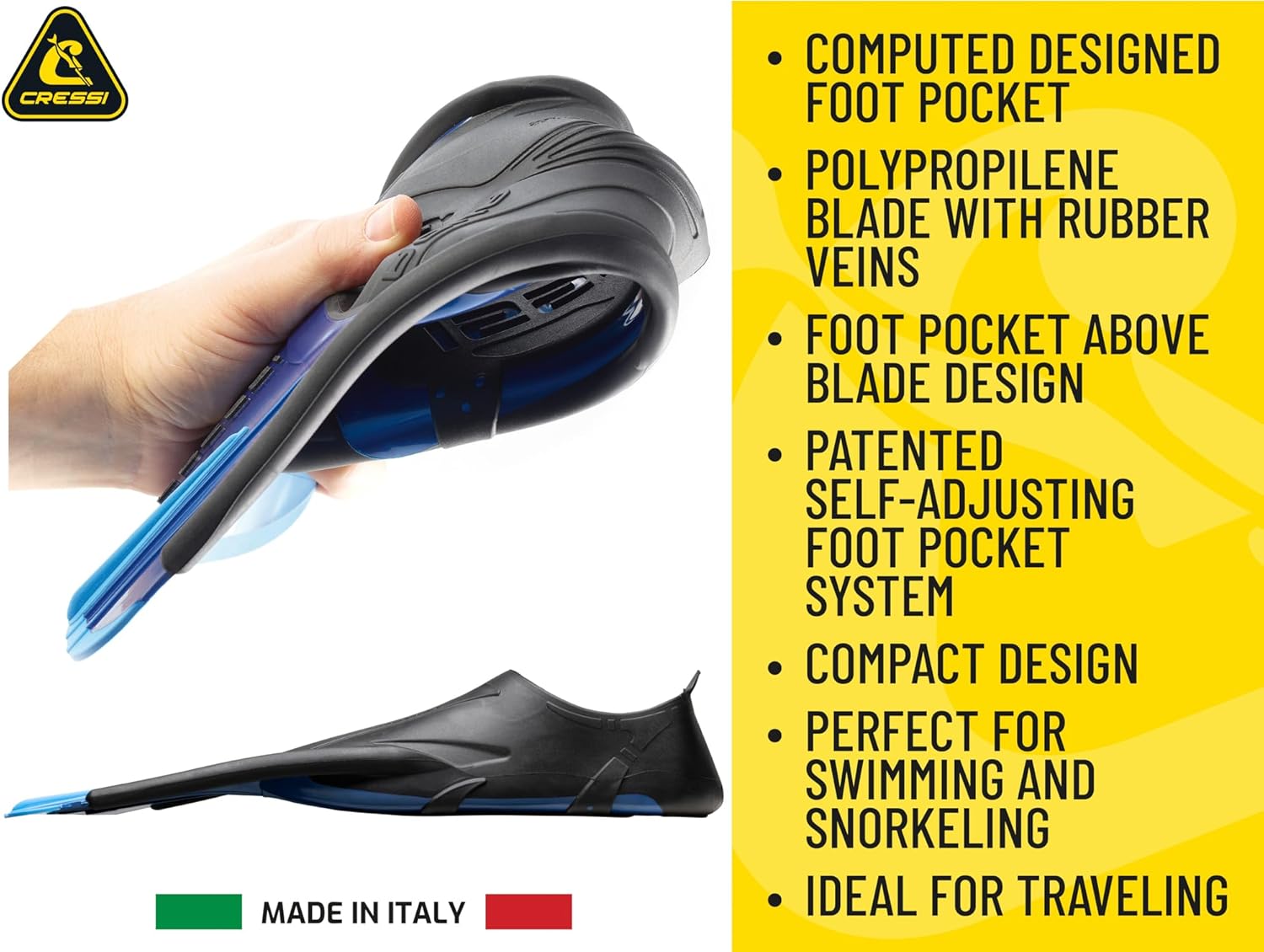 - Die Vorteile von kurzen Schwimmflossen: extrem handlich; sie ermöglichen ein schnelles und effizientes Vorankommen; der optimale Kompromiss zwischen Tauchflossen und barfuss Schnorcheln; sie lassen sich sehr einfach im Reisegepäck unterbringen