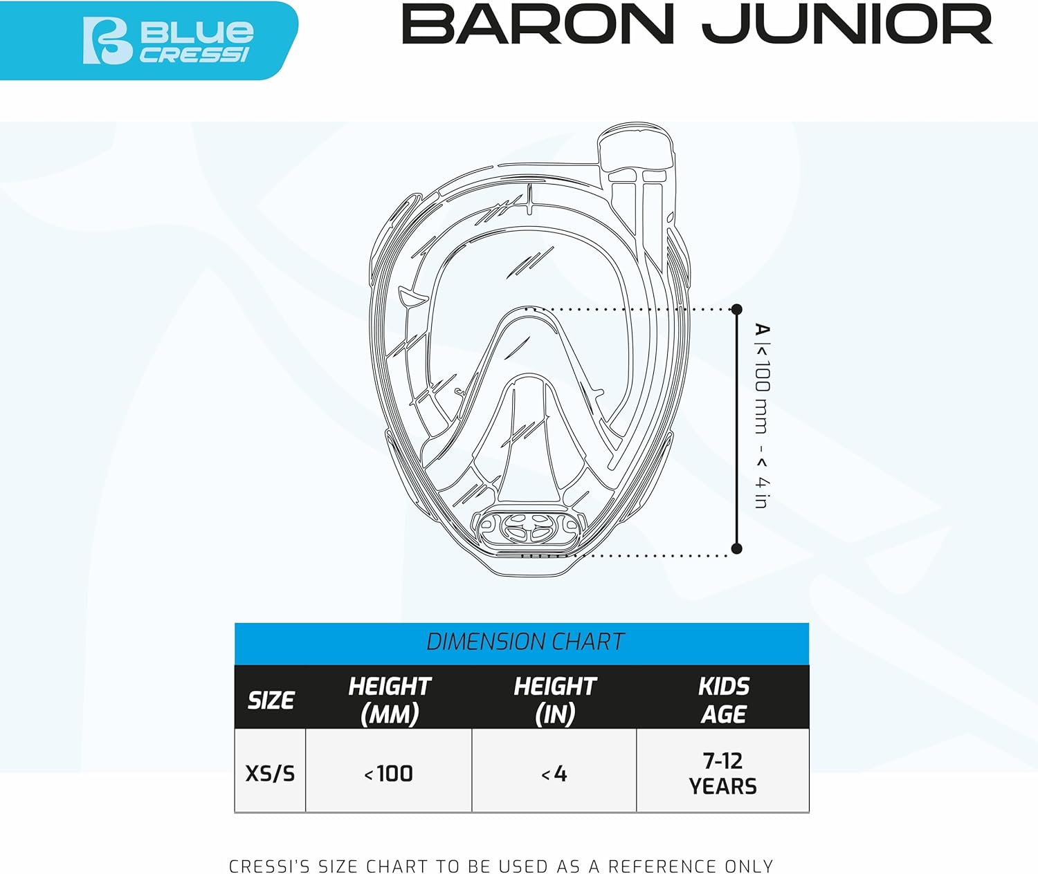 Cressi Baron Full Face Mask - Vollgesichts Antibeschlagmaske mit Auslassventil und Dry Schnorchel XS