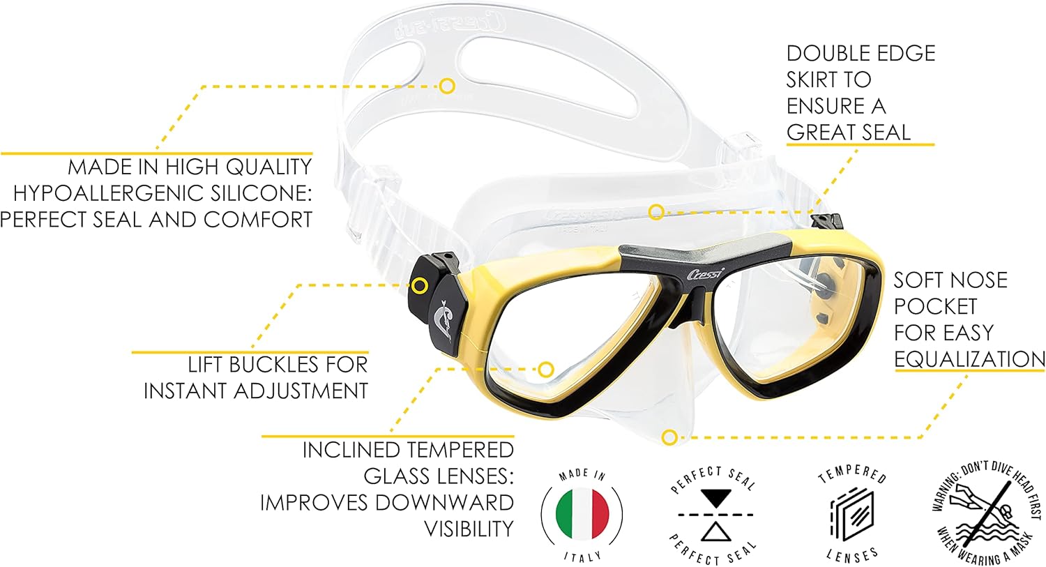 - Weiche und komfortable Dichtlippen verhinden das Eindringen von Wasser; Geringes Innenvolumen gewährleistet leichteres Ausblasen der Tauchmaske unter Wasser