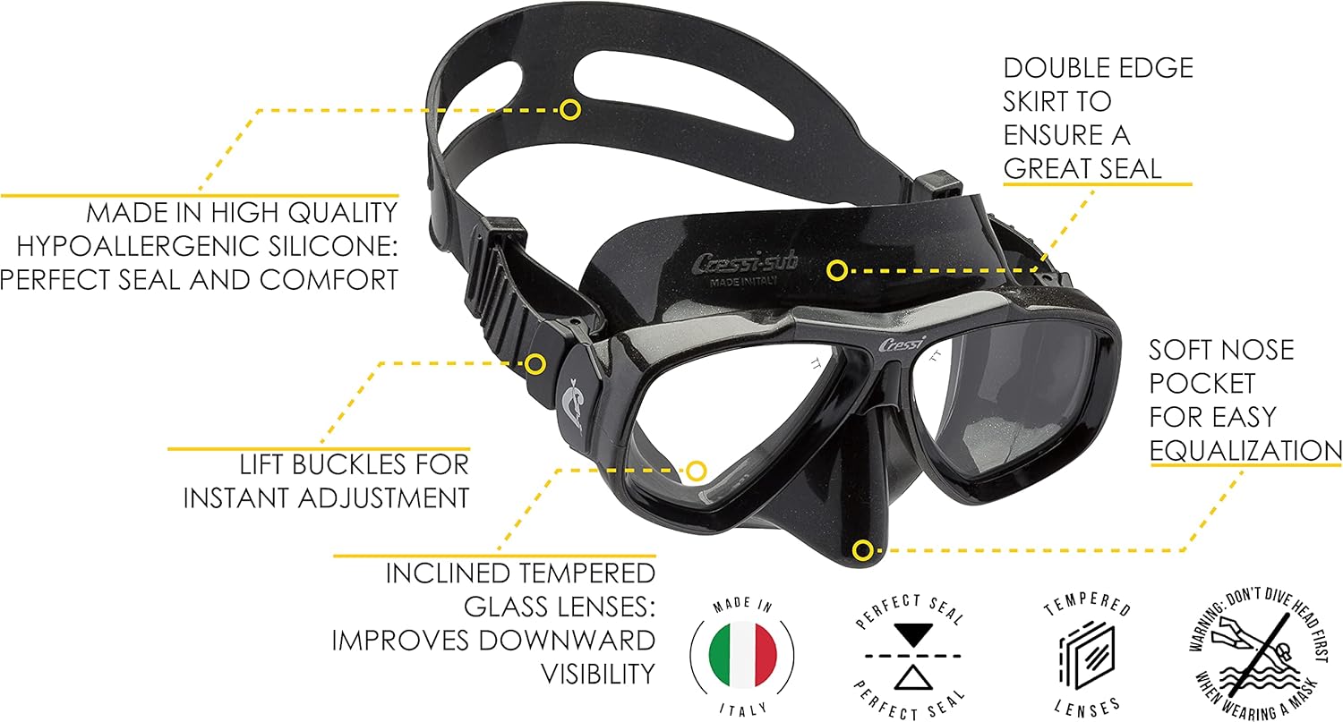 - Weiche und komfortable Dichtlippen verhinden das Eindringen von Wasser; Geringes Innenvolumen gewährleistet leichteres Ausblasen der Tauchmaske unter Wasser