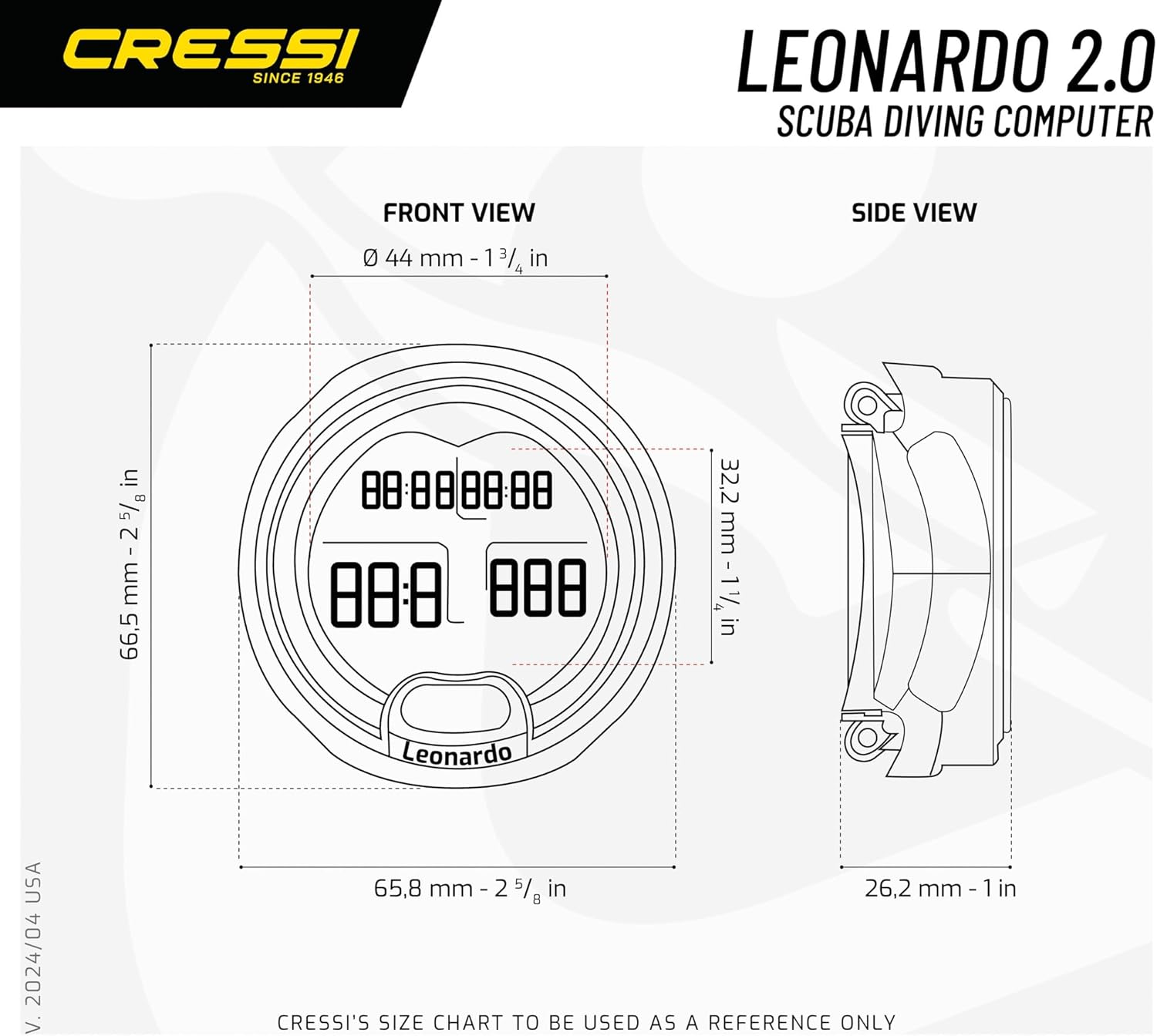 - Cressi-Schnittstelle (d. H. USB-Kabel + Schnittstelle zum Anschliessen des Tauchcomputers an den PC) ist NICHT im Lieferumfang enthalten, kann jedoch separat erworben werden.