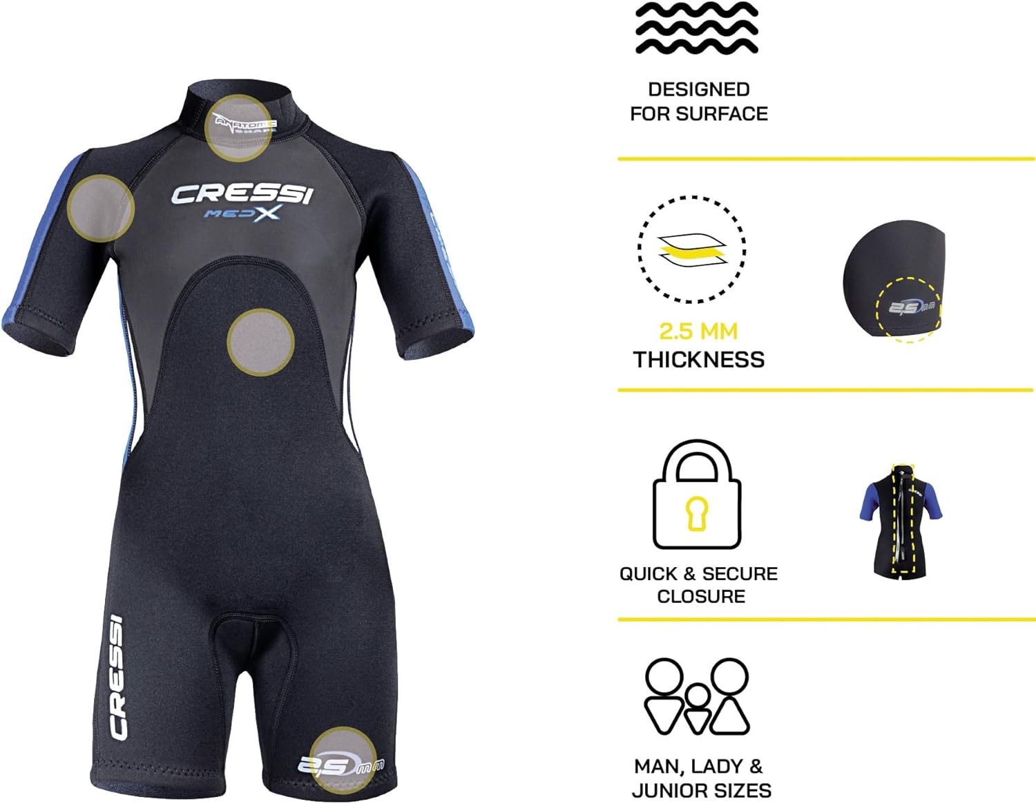 Cressi Med X Jr Wetsuit 2.5mm - Shorty Neoprenanzug Ideal zum Schnorcheln und Tauchen in gemässigten