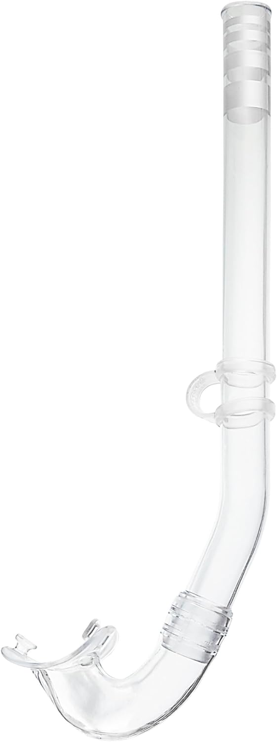 • Schnorchel befestigt mit einer Gummiöse am Maskenband, die zur Regulierung verschoben werden kann