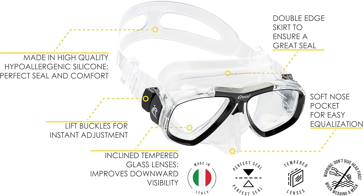 - Weiche und komfortable Dichtlippen verhinden das Eindringen von Wasser; Geringes Innenvolumen gewährleistet leichteres Ausblasen der Tauchmaske unter Wasser