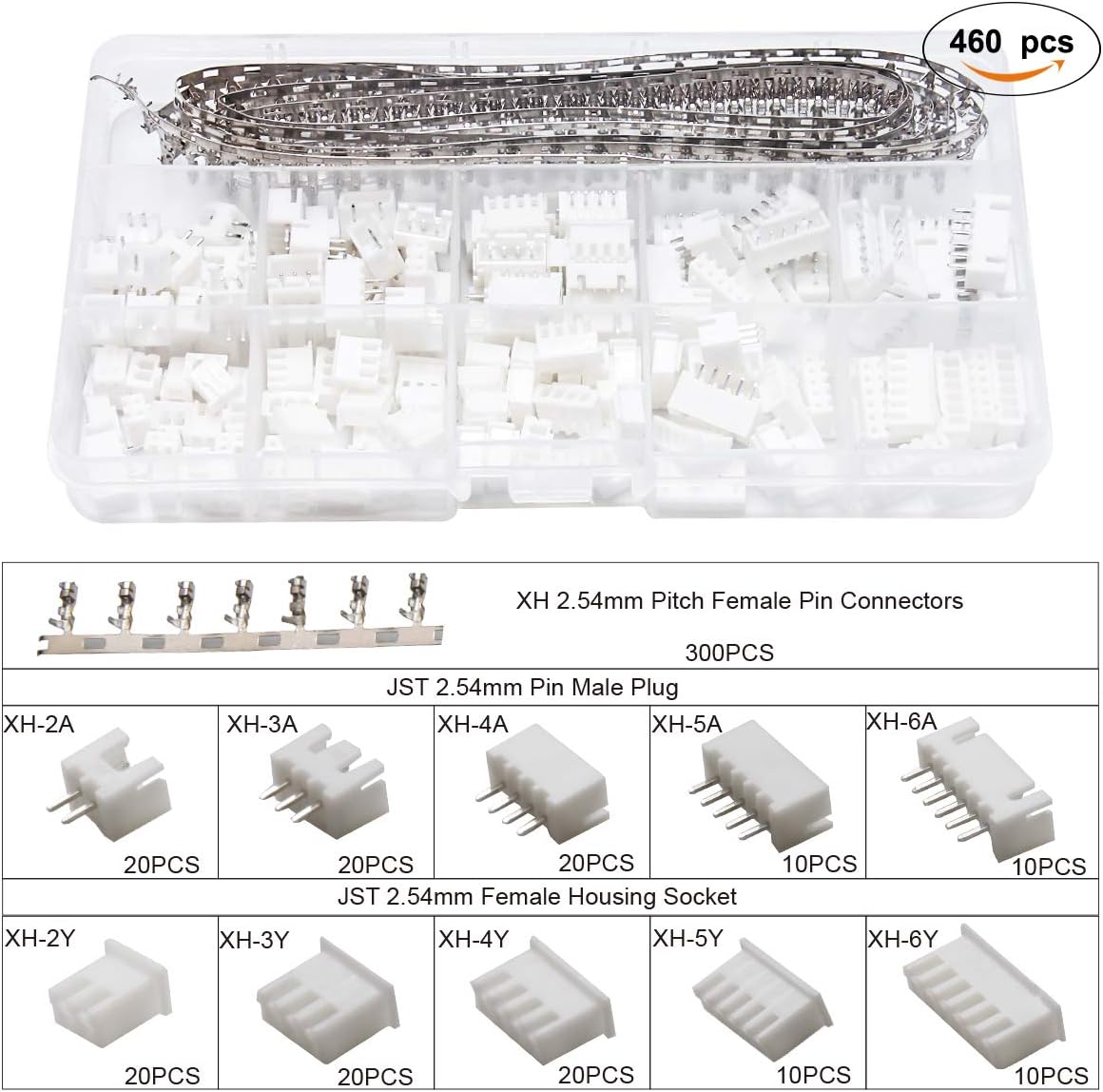 - 460 pcs 2,54 mm JST - XH Crimpkontakt und 2/3/4/5/6-poliges Buchsengehäuse und Stiftleiste