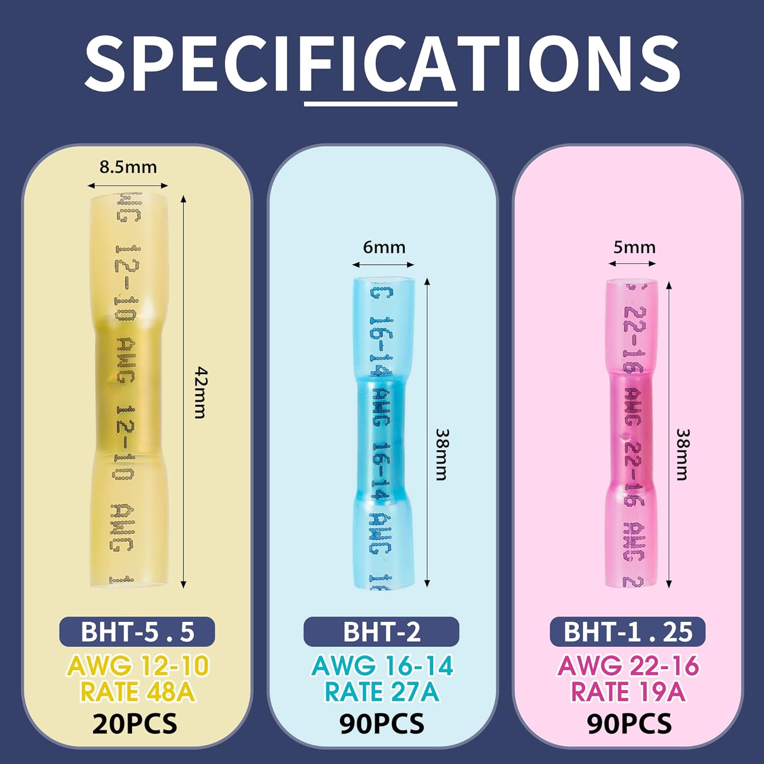 • 【Wärmeschrumpf-Crimpwerkzeug-Kit】: Das Paket enthält 200 Stück Wärmeschrumpf-Stossverbinder und ein Crimpwerkzeug für Wärmeschrumpf-Stossverbinder. Grosses Preis-Leistungs-Verhältnis für Kabelliebhaber.
