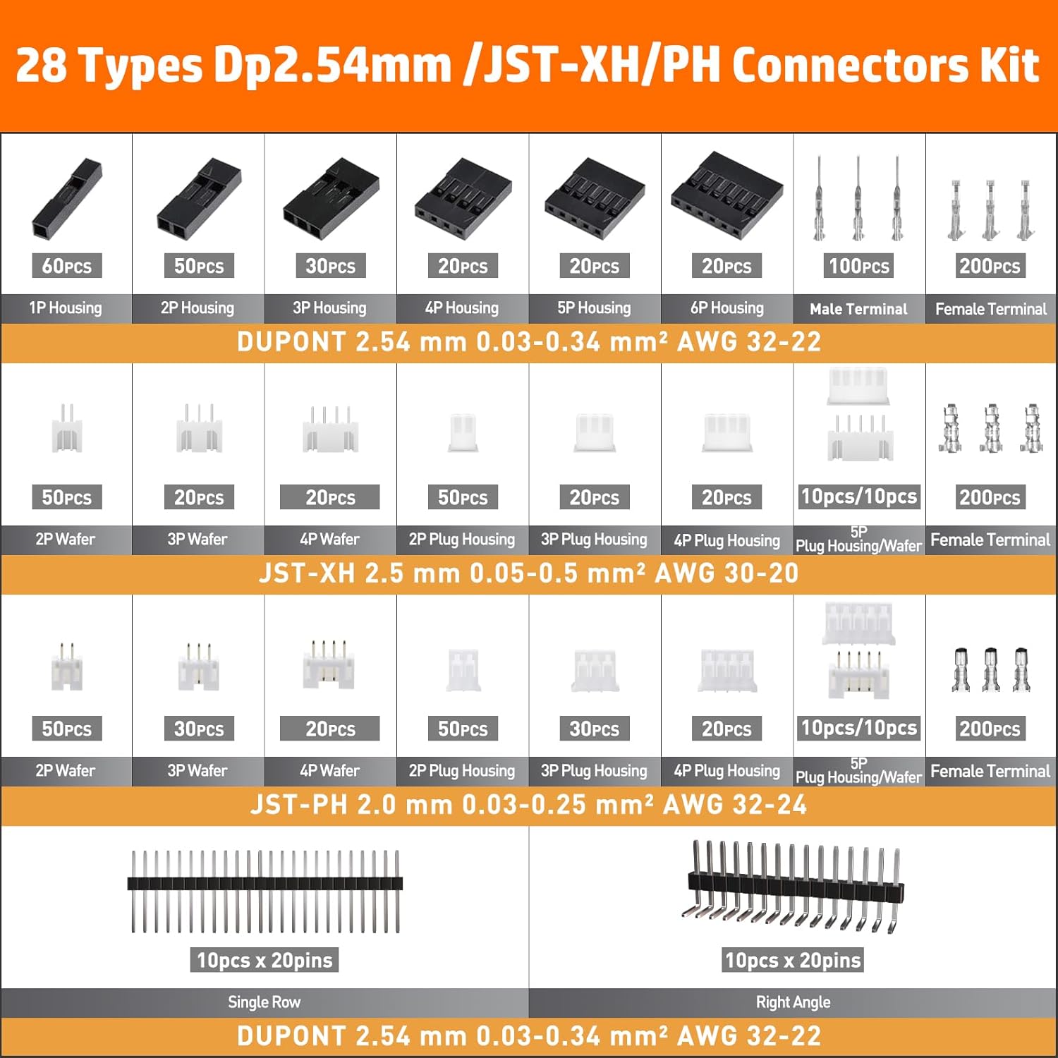- ✅ EIN ECHTER ALLROUNDER - Crimpzange ist in der Lage verschiedene Arten zu verpressen, z.B. JST-PH 2,0, Dupont 2,54 mm, JST(XH/SYP/SM 2,5mm,PH 2,0mm,VH 3,96mm), KF2510, Molex (KK 254 + Micro-Fit 3,0 mm), AMP/TE EI-Serie, D-SUB und Futaba Servo