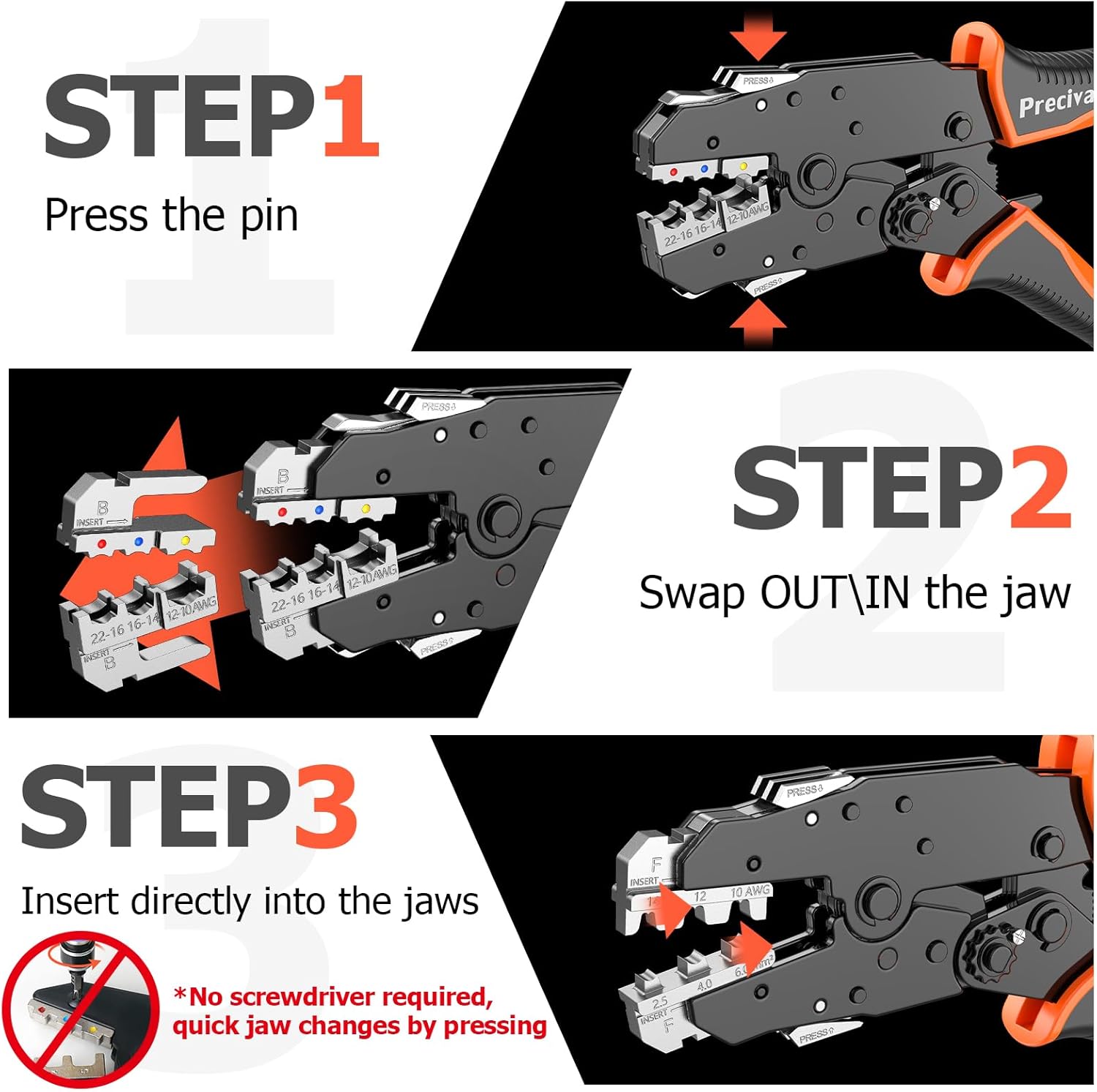 - đăInnovatives patentiertes Designă---- Unser exklusives, patentiertes Design ermöglicht eine schnelle und einfache Austauschbarkeit der Crimpköpfe in nur 3 einfachen Schritten: drĂŒcken, entfernen und installieren. Steigern Sie die Effizienz und