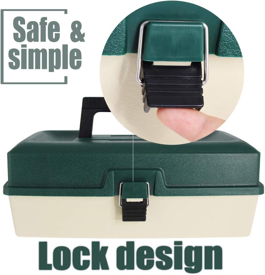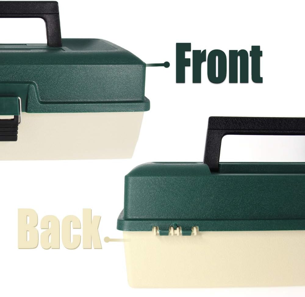 • Der robuste Griff kann sehr bequem gehalten werden. Der Griff kann gefaltet werden und diese Angelkoffer ist sehr stark, wodurch diese Angelkoffer als Sitzbox verwendet werden kann, und bietet eine Komfortable alternative zum Angelstuhl.