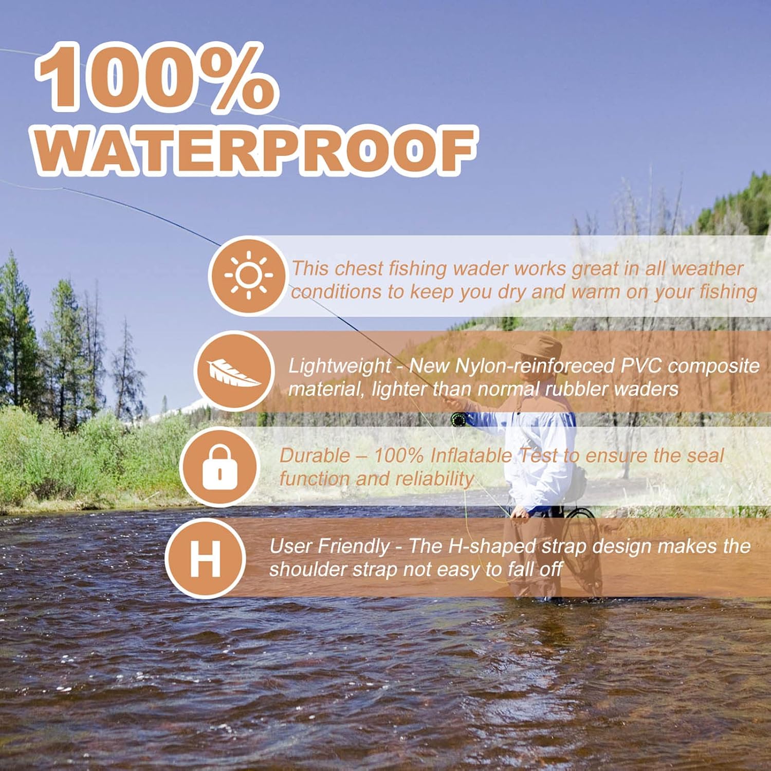 • Wasserdicht Wathose - Hochwertige PVC- und Nylonmaterialien, abgestimmt mit Gummistiefeln und dann verwendet