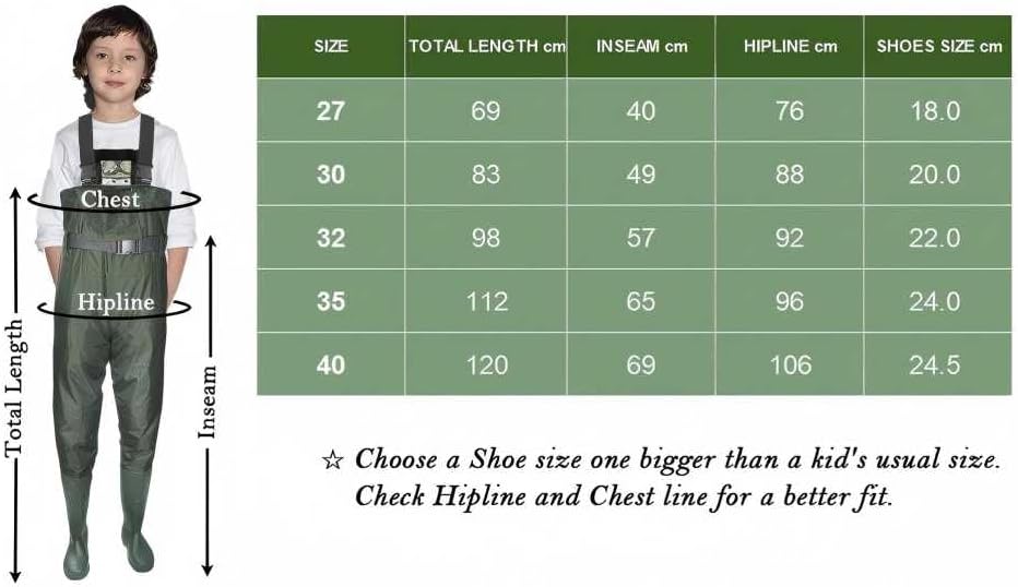 - SICHERHEIT UND LANGLEBIGKEIT - Diese Wathose wurde entwickelt, um die haltbarste und schützendste Wathose für aktive Outdoor zu sein. Bitte passen Sie die Grössenauswahl an Ihre normale Schuhgrösse an. Wenn Ihre Füsse breit sind oder Sie dicke Socken tragen müssen, wählen Sie bitte EINE GRÖSSE GRÖSSER als üblich.