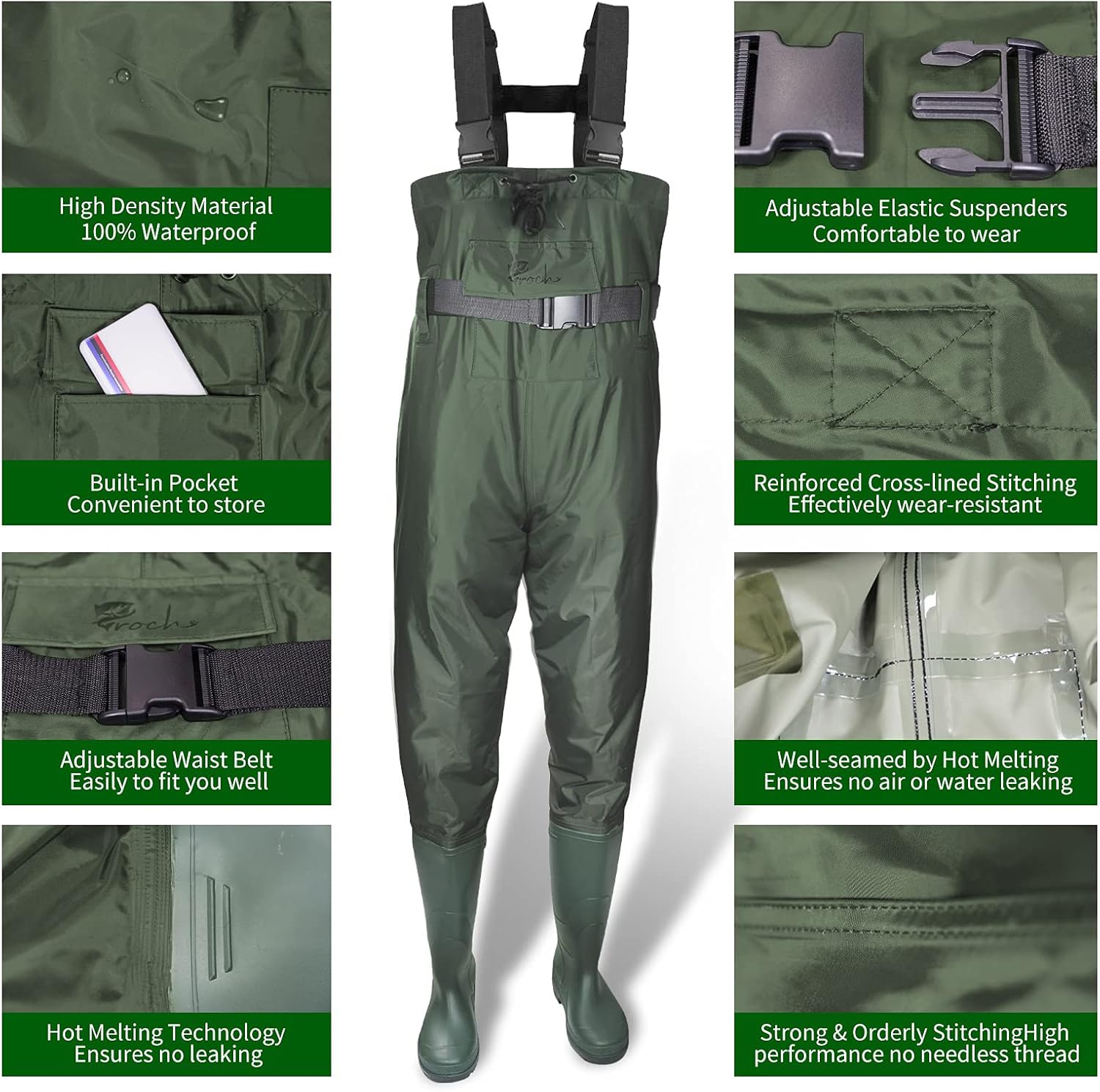 - LEICHT - Diese Wathose ist aus verbessertem, robustem Nylon der neuen Generation mit einer zweilagigen Oberstoffkonstruktion aus 70D-Nylon und PVC hergestellt, wodurch sie eine hervorragende Strickdichteleistung aufweist - langlebiger und leichter als herkömmliche Nylon-Wathosen auf dem heutigen Markt.