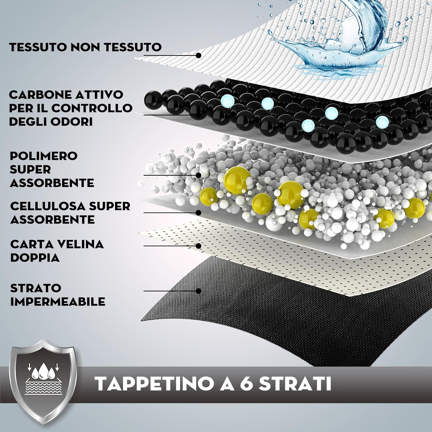 • SUPER ABSORBIEREND: 5 Schichten, um Flüssigkeiten zu stoppen und Böden auch nach mehrmaligem Gebrauch durch das Haustier trocken und fleckenfrei zu halten