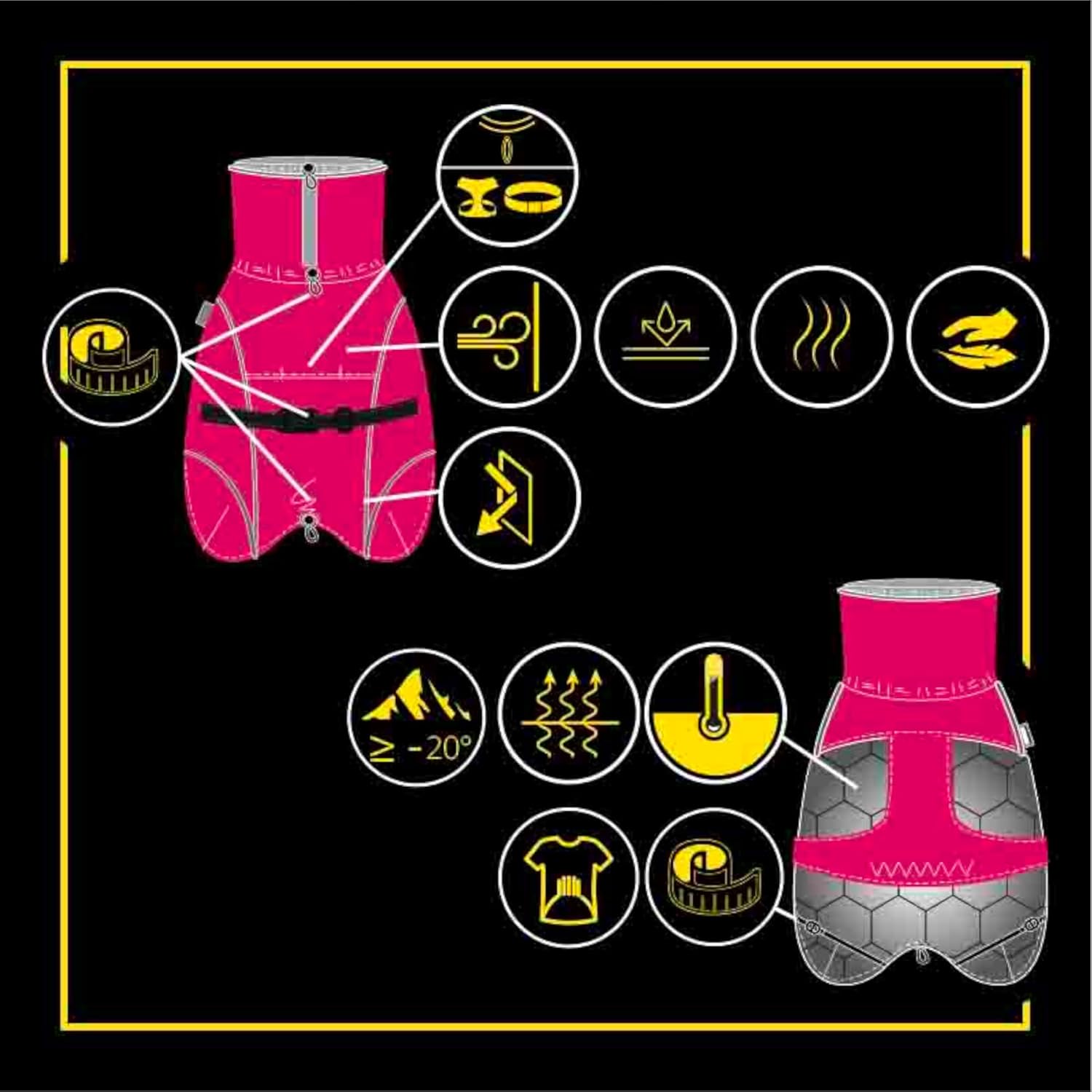 - Thermoregulierend: Das Thermofutter reduziert die Wärmeverteilung des Körpers und reguliert die Körpertemperatur des Tieres. Innenfutter, schützt bis -20° C