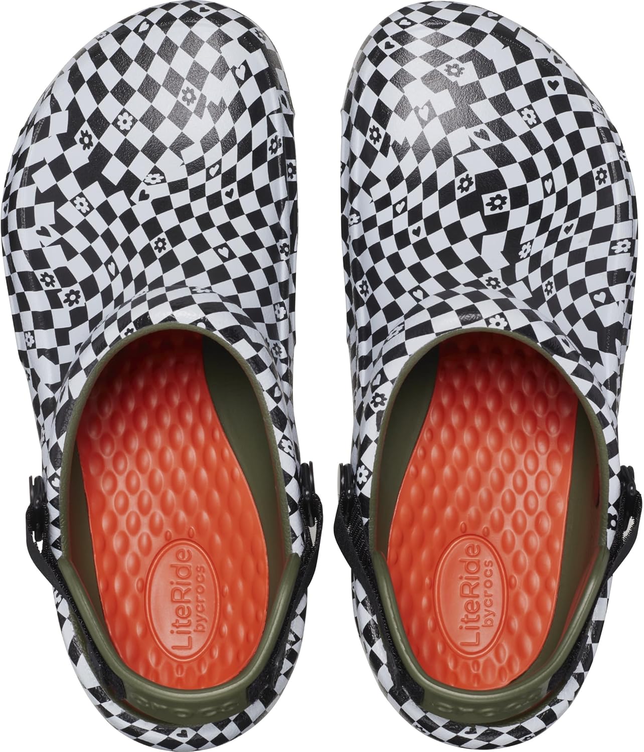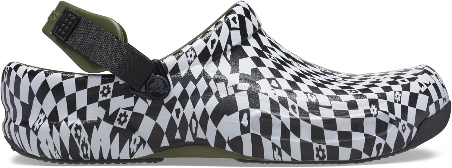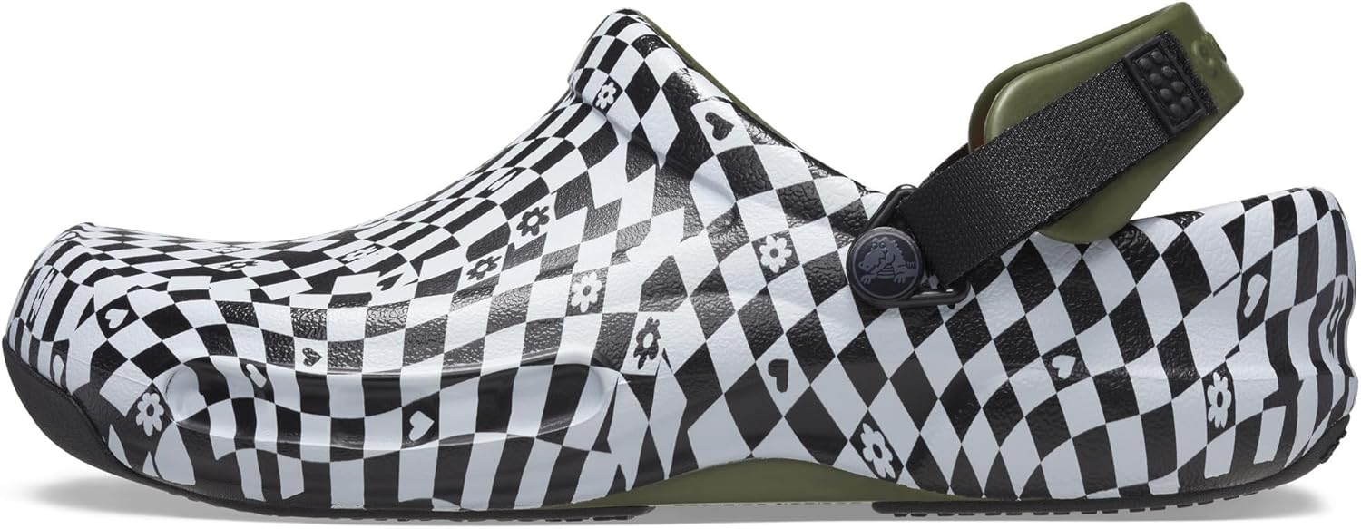 PRODUKTBESCHREIBUNGEN Wählen Sie Ihr liebstes kulinarisches Muster und erleben Sie mit diesen Bistro Clogs wunderbaren Komfort – jetzt mit Fussbett aus innovativem LiteRide™-Schaum. Dieser leichte Schuh wurde speziell für die Gastronomie-, Hotel- und Gesundheitsbranche entworfen und bietet Ihnen selbst während langer Schichten optimalen Support. Das rutschfeste Crocs Lock™-Profil und die geschützte Zehenpartie helfen Ihnen dabei, stets Ihr Bestes zu geben. Entspannte Passform und normale Schuhweite.