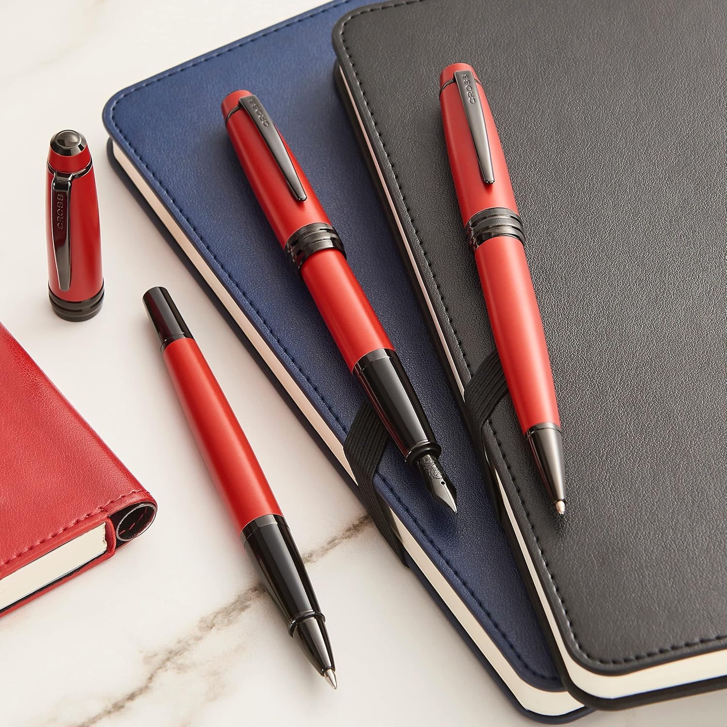 - Lieferumfang: Cross Bailey Füllhalter Mattrot mit schwarzen PVD Beschlägen (Federstärke M, 2 schwarze Tintenpatronen #8921), incl. Premium Geschenkbox