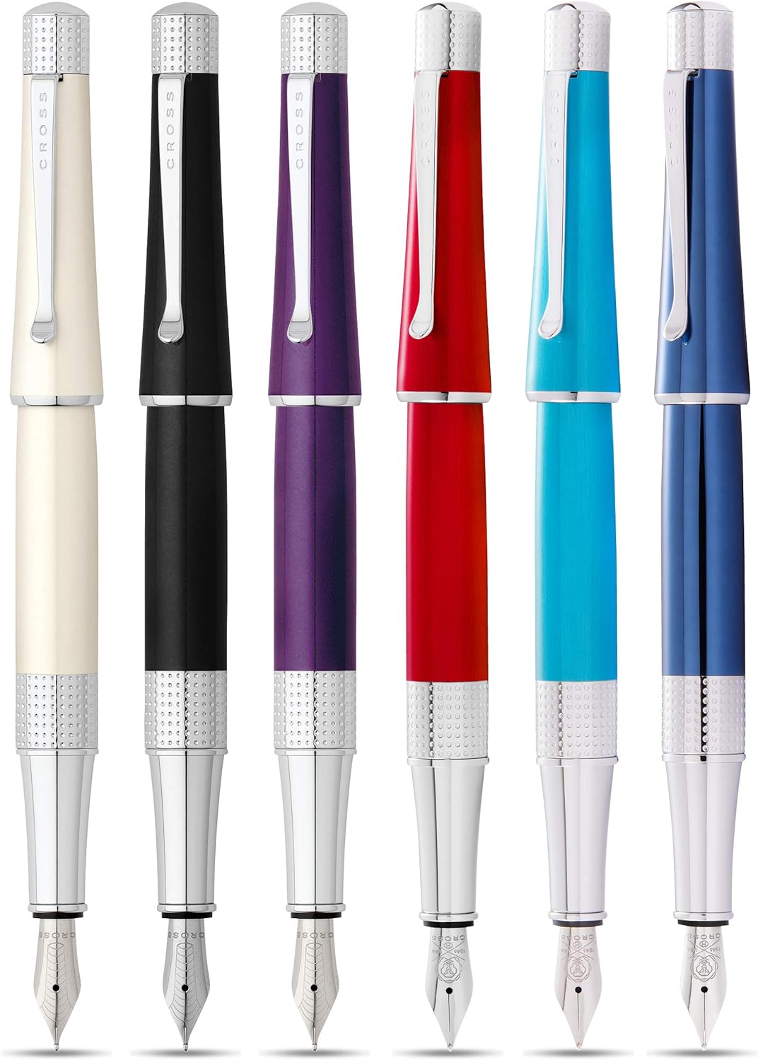 - Lieferumfang: Cross Beverly Füllfederhalter in Violett Lack, mit verchromten Beschlägen, Federstärke M und zwei schwarzen Tintenpatronen in einer Premium Geschenkbox