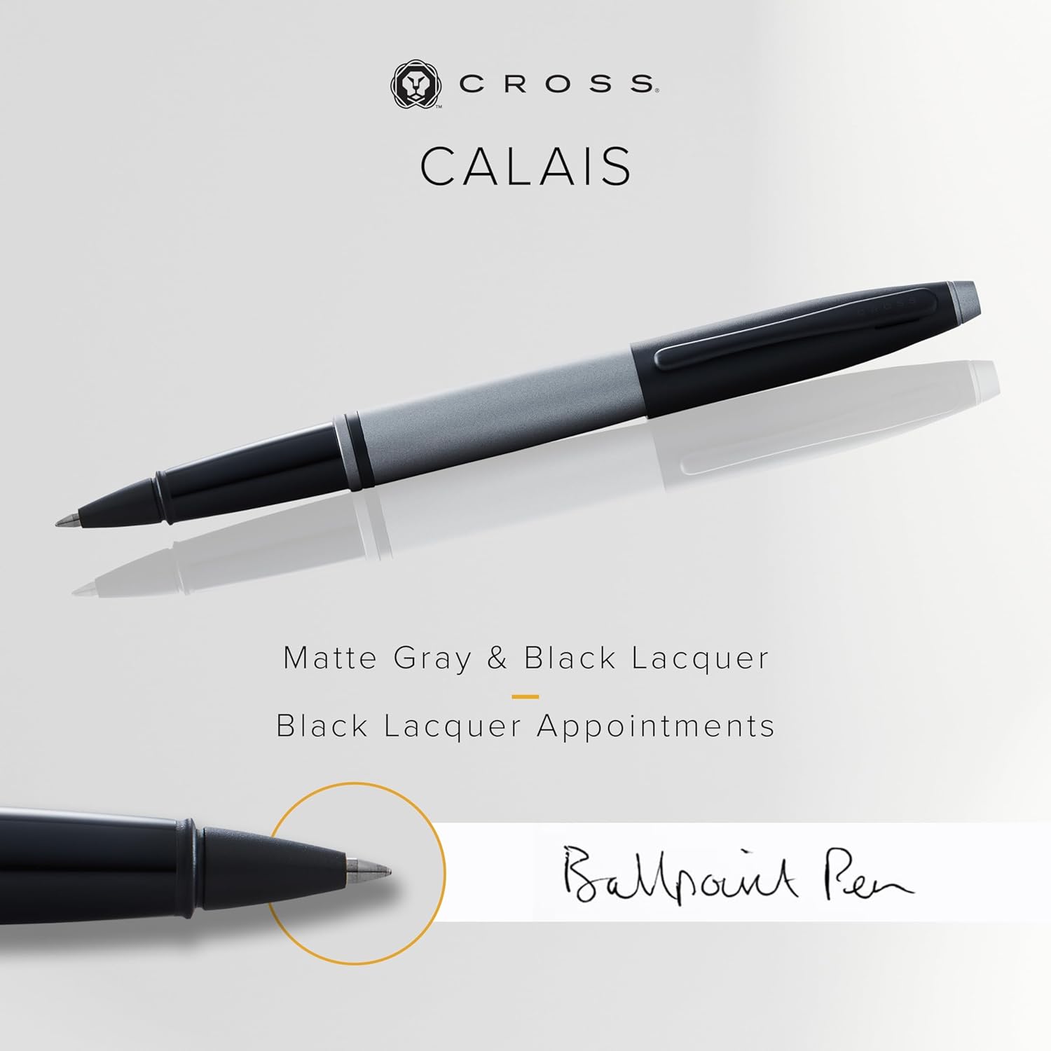 - Cross Calais Rollerball in Mattgrau-Schwarz, 1x schwarze Gel-Rollerballmine #8523, inkl. Premium Geschenkbox