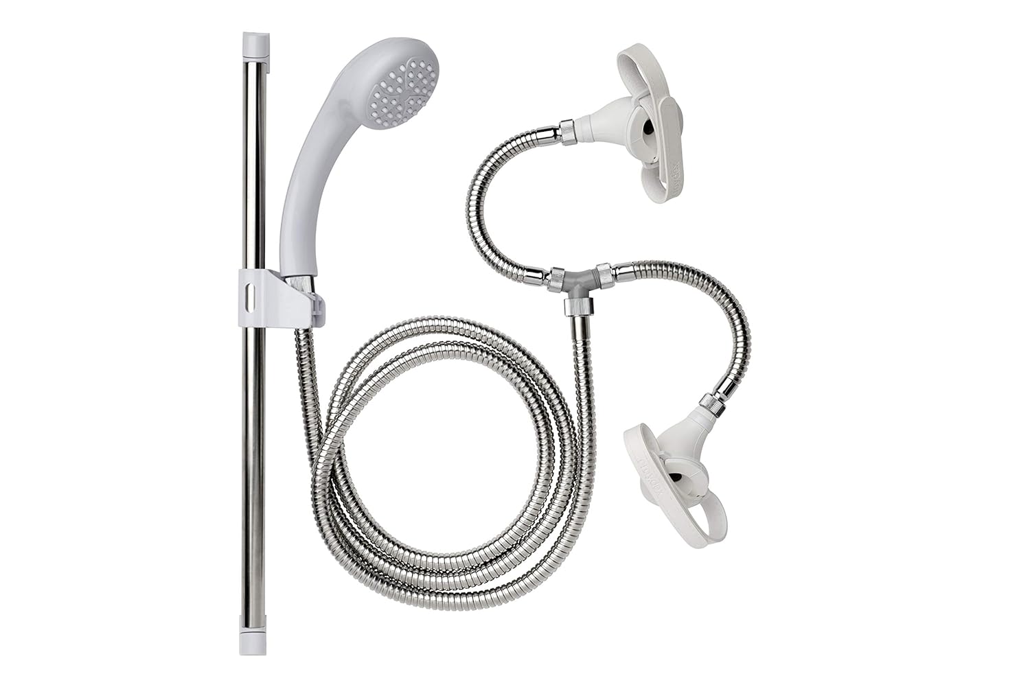 - Im Lieferumfang enthalten: 1 x Duschkopf, 1 x Brauseschlauch, 1 x Steigrohr, 2 x Hahnanschlüsse, 1 x Befestigungspaket