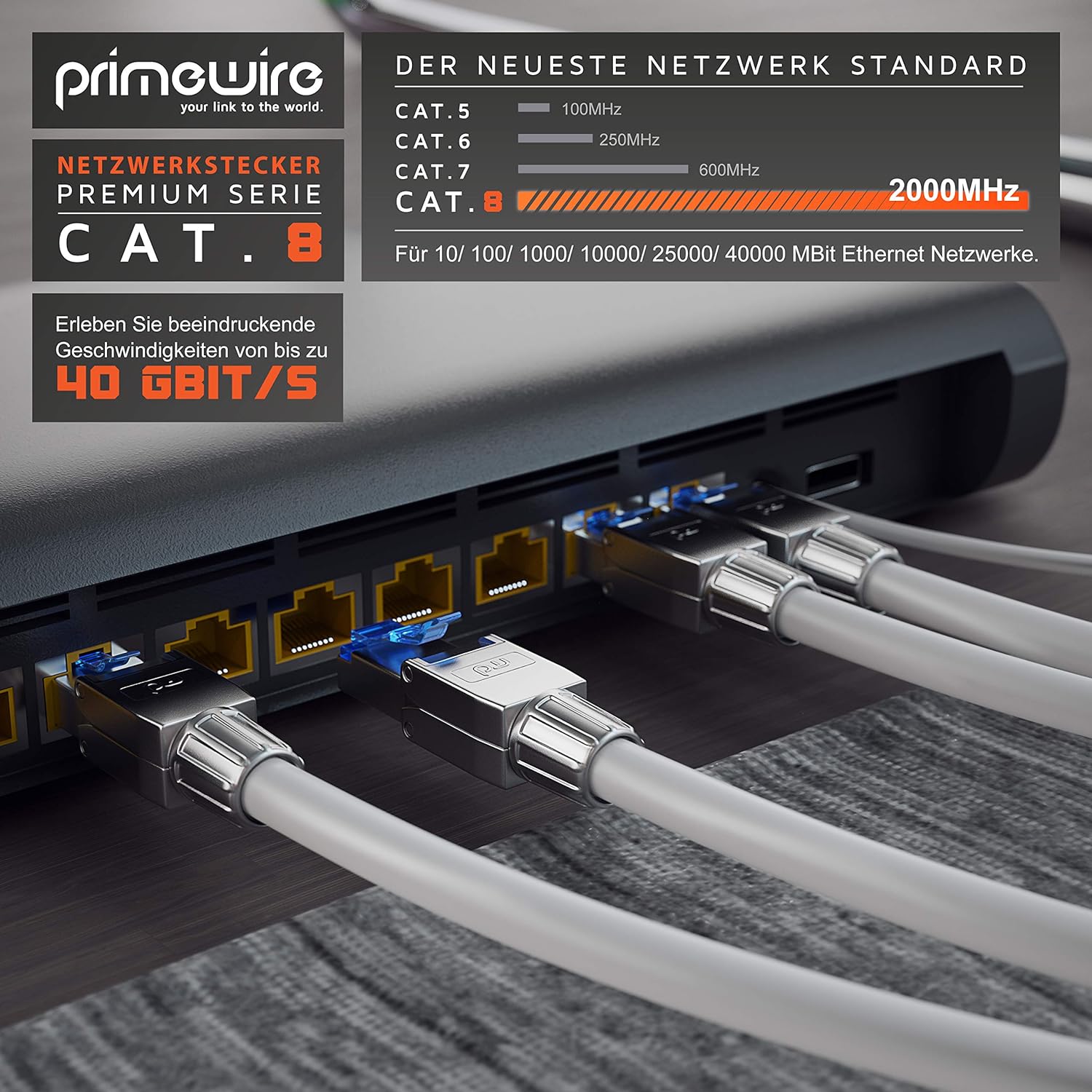 • 100% abwärtskompatibel zu anderen CAT-Varianten wie Cat.5/Cat.5e/Cat.6 / Cat.6a. | Ideal für 10/ 100/ 1000/ 10000/ 25000/ 40000 MBit Ethernet Netzwerke.