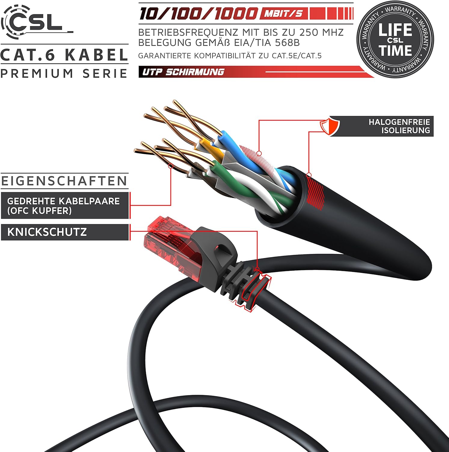 CSL - 20 x 0,25m CAT.6 Ethernet Gigabit LAN Netzwerkkabel RJ45-10 100 1000Mbit s - Patchkabel - komp