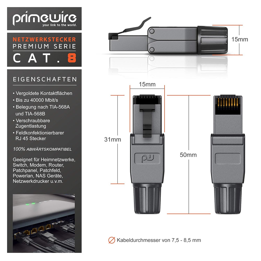 - Primewire präsentiert den feldkonfektionierbaren RJ45-Stecker für Twisted-Pair-Kabel der Kategorie 6 und 7. Der Stecker ist ausgelegt für Datenraten bis 10 GBit/s. | 305075