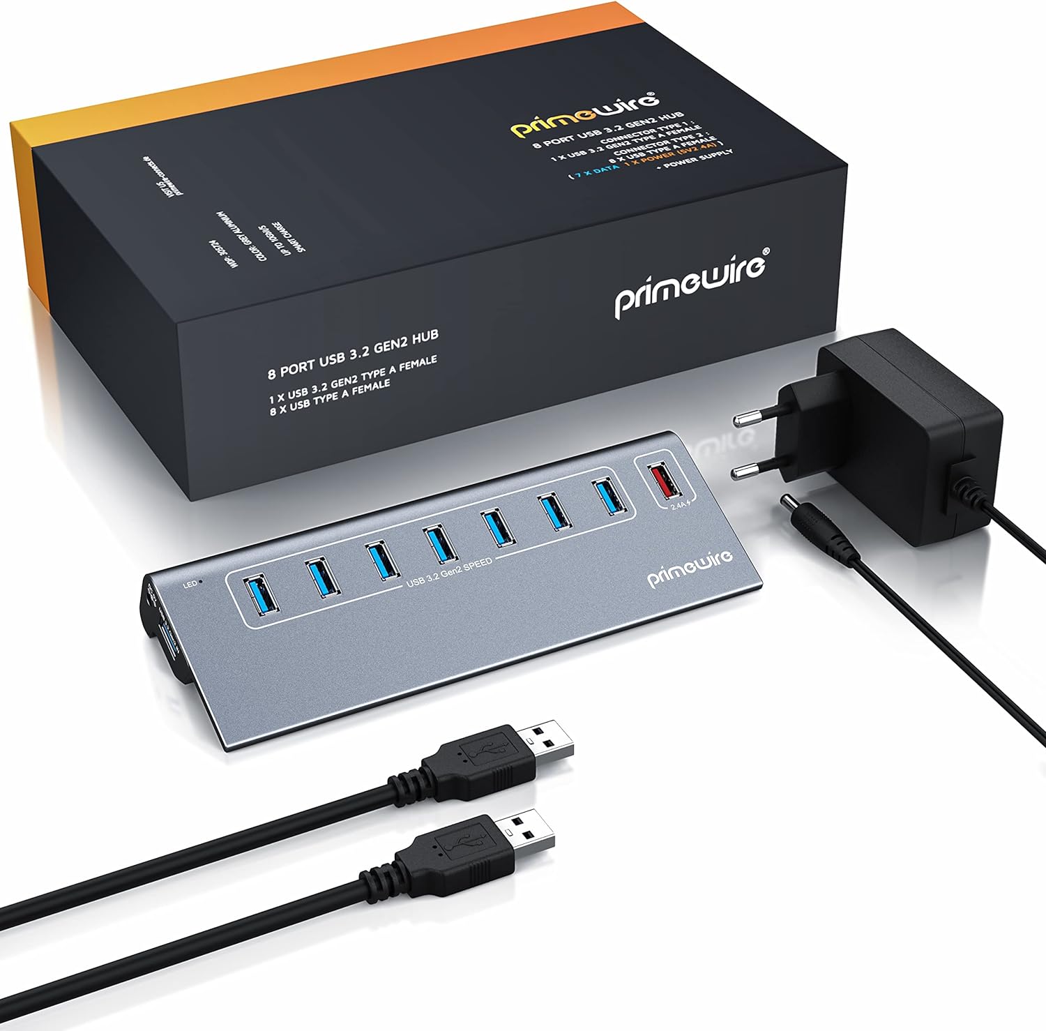 - 7 x DATENPORTS UND 1 x LADEPORT: Primewire 8 Port USB-Hub neuester Generation. Dank USB 3.2 Gen2-Standard mit Datentransferraten von bis zu 10 Gbit/s! Ideal für Desktop-PCs, Notebooks, Tablets und Laptops. | Ausserdem kompatibel mit Xbox One, Series