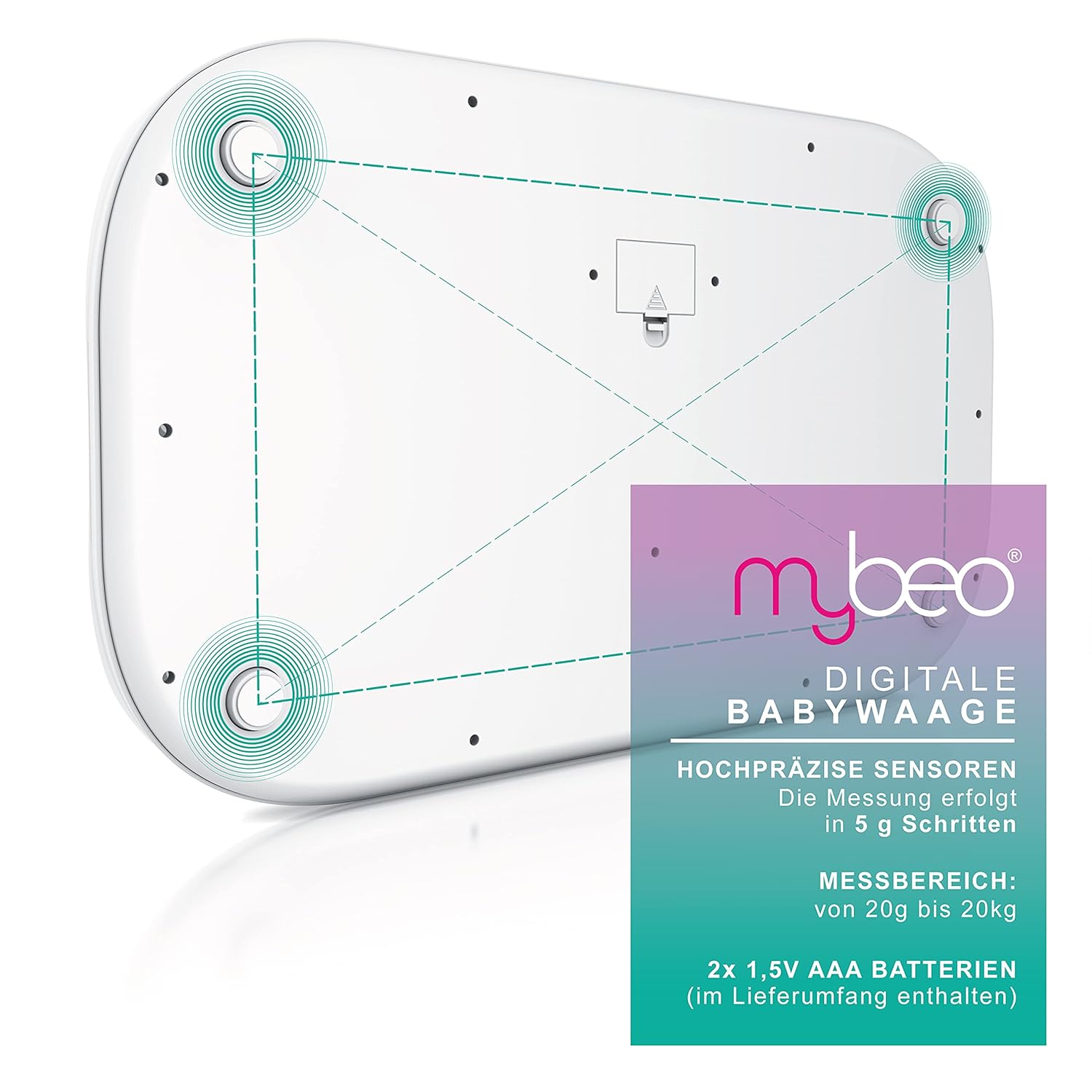 • Sehr grosse Auflagefläche von 56 x 33 cm. Sie können Ihr Baby sanft auf den Rücken legen und erhalten dank der hohen Sensitivität der vier Sensoren ein schnelles Ergebnis. Der Wert ist auf 5 Gramm genau – präziser als bei den meisten