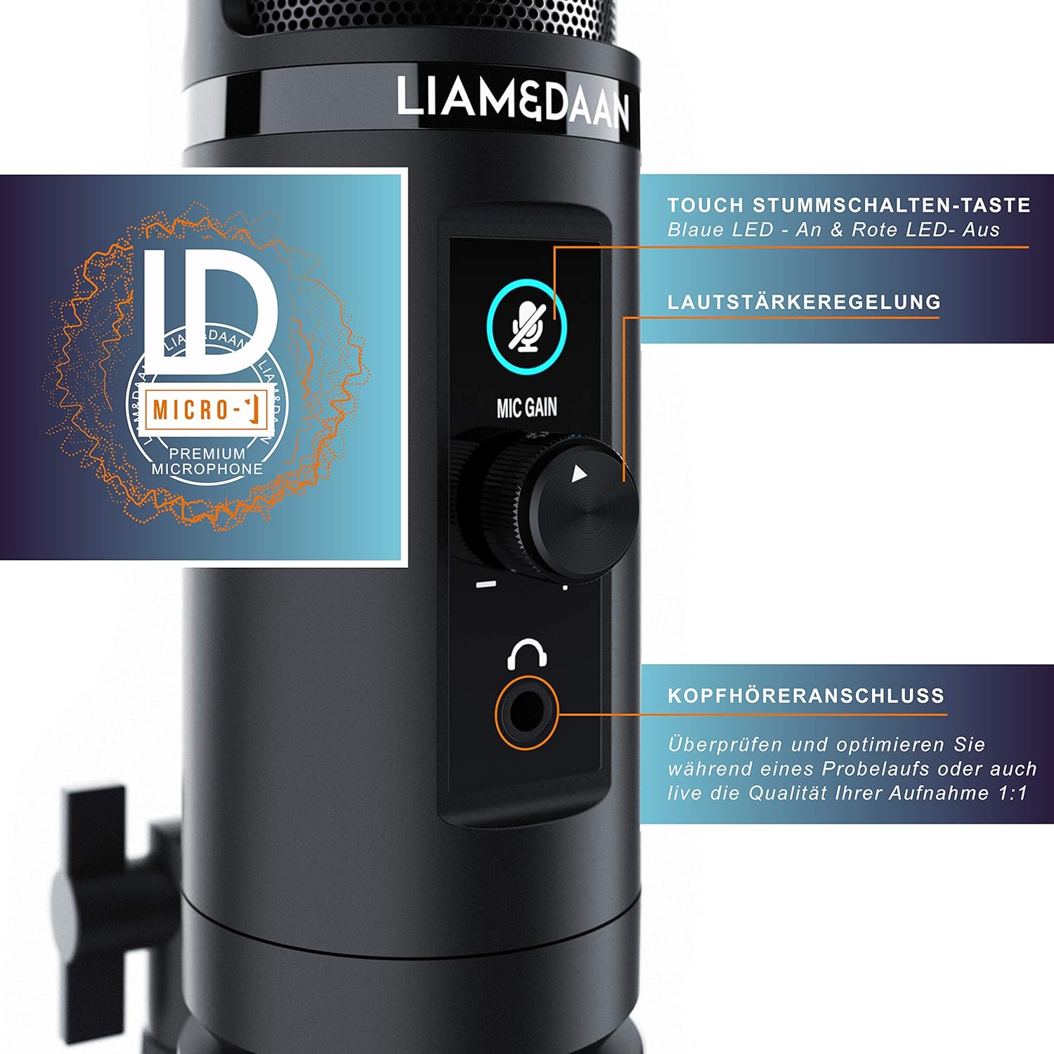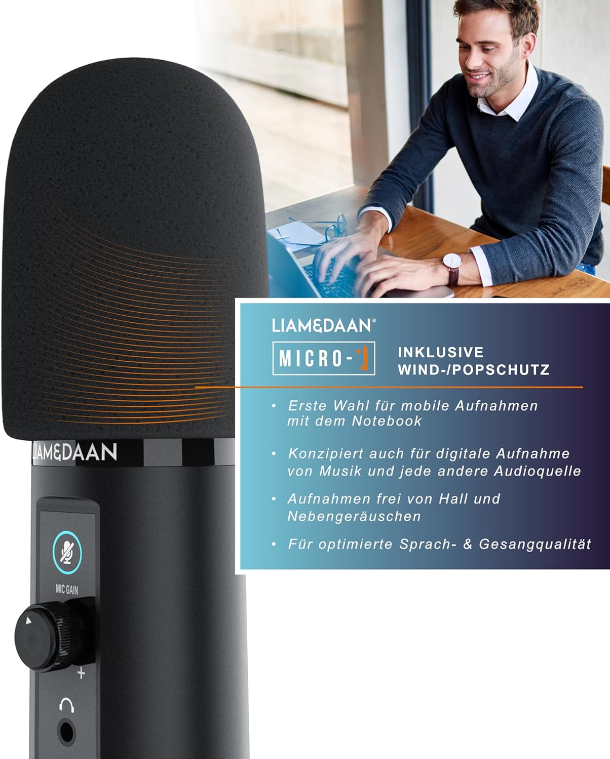 - IDEAL FÜR PC UND NOTEBOOK. Das „Micro-1“ von Liam&Daan ist dank seiner kompakten Abmessungen und des geringen Gewichts erste Wahl für mobile Aufnahmen mit dem Notebook, stellt aber auch im Home Recording am PC mit seiner Sampling-Rate von bis zu