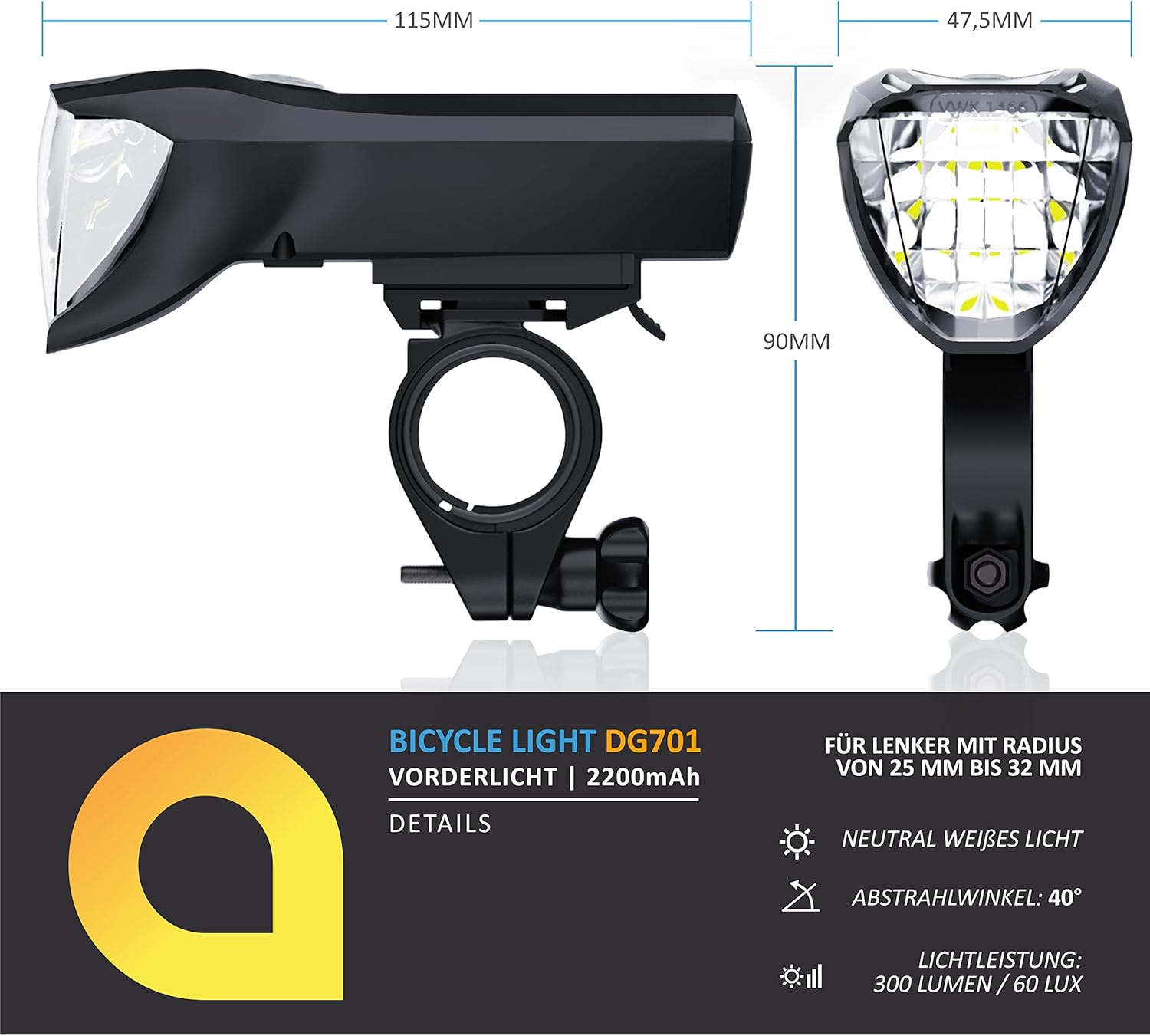 - Einfache Montage ohne Werkzeug. Das Licht wird ganz einfach mit der Feststellschraube festgedreht. Das Vorderlicht ist geeignet für Lenkerdurchmesser von 25 bis 32 mm.