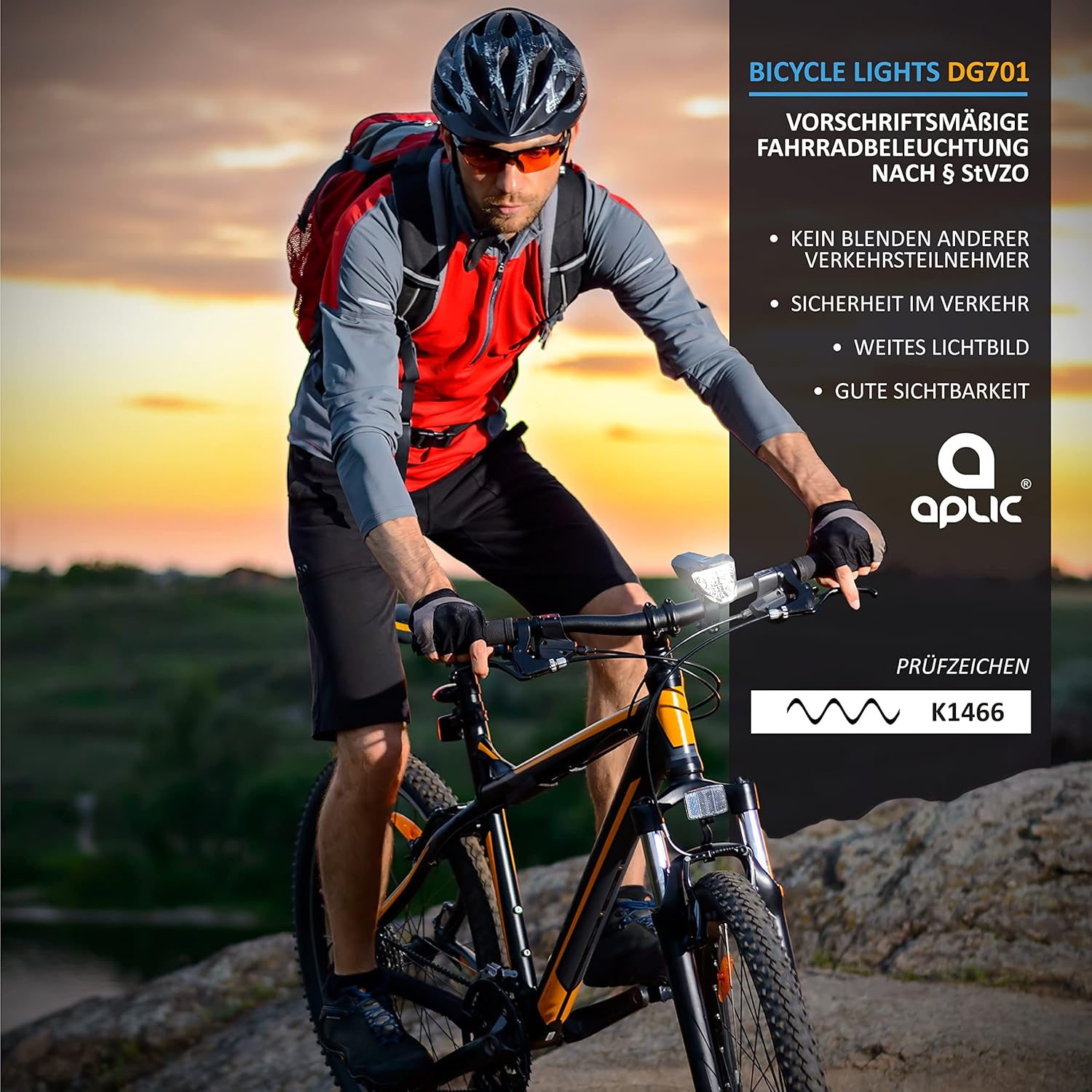 - Das Aplic Akkulicht bietet eine enorme Helligkeit von 50 Lux und leuchtet die Fahrstrecke vor Ihnen bestens aus. Aufgrund der durchdachten Spiegelgeometrie werden entgegenkommende Fahrer nicht geblendet. StVZO-zugelassen. | 303723
