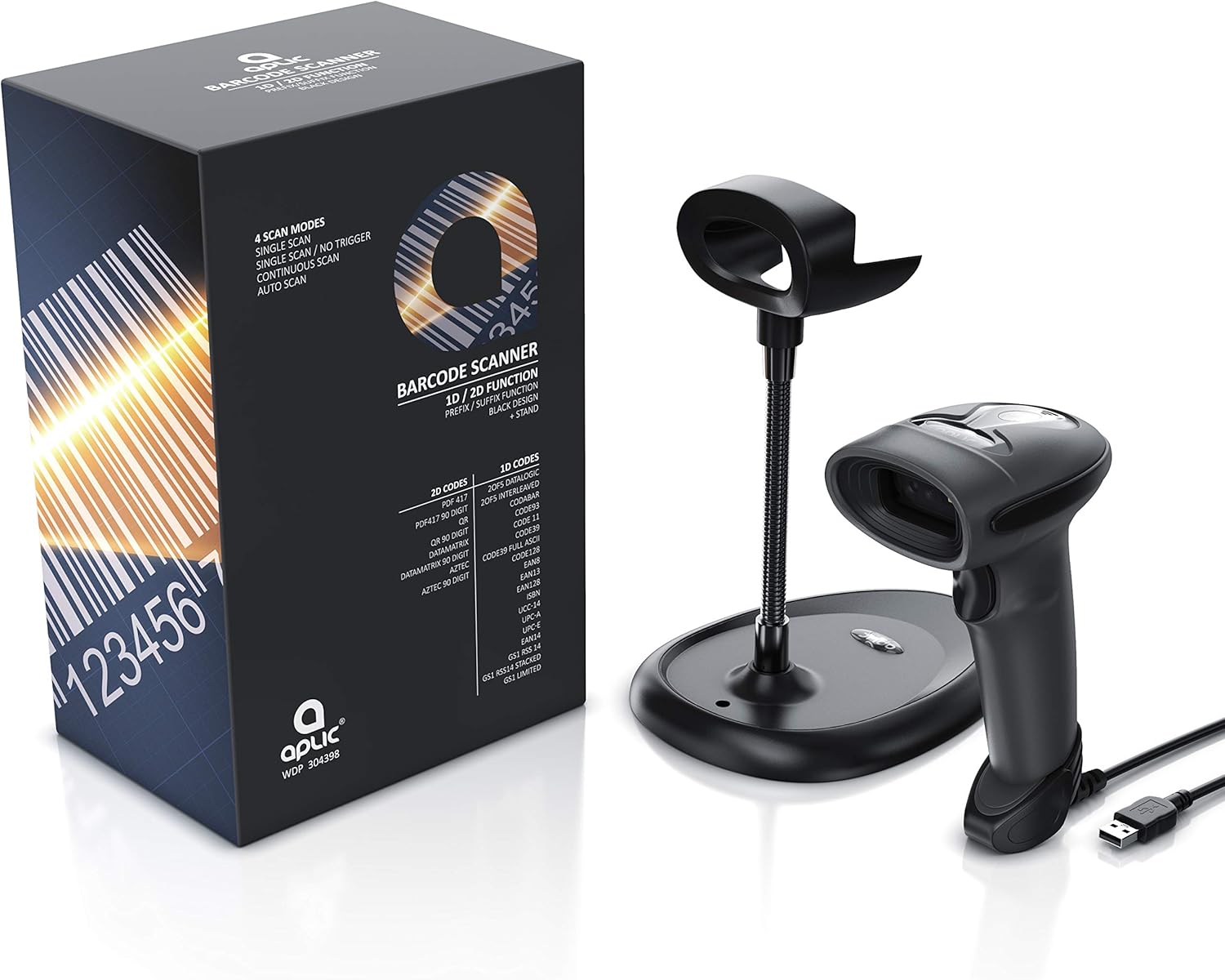 - Der Aplic 2D-Mehrzweck Handscanner decodiert viele Arten von 1D und 2D Barcodes in hoher Geschwindigkeit, einschliesslich QR, Data Matrix, PDF417 u.v.m. Mit seiner Hochleistungs-Abtastung liest er Barcodes auch vom Smartphone, Laptop und PC-Bildschirm ein. Inklusive praktischer Halterung mit Schwenkarm: einfach den Scanner einlegen und die zu scannenden Barcodes darunter hindurchziehen. | 304398