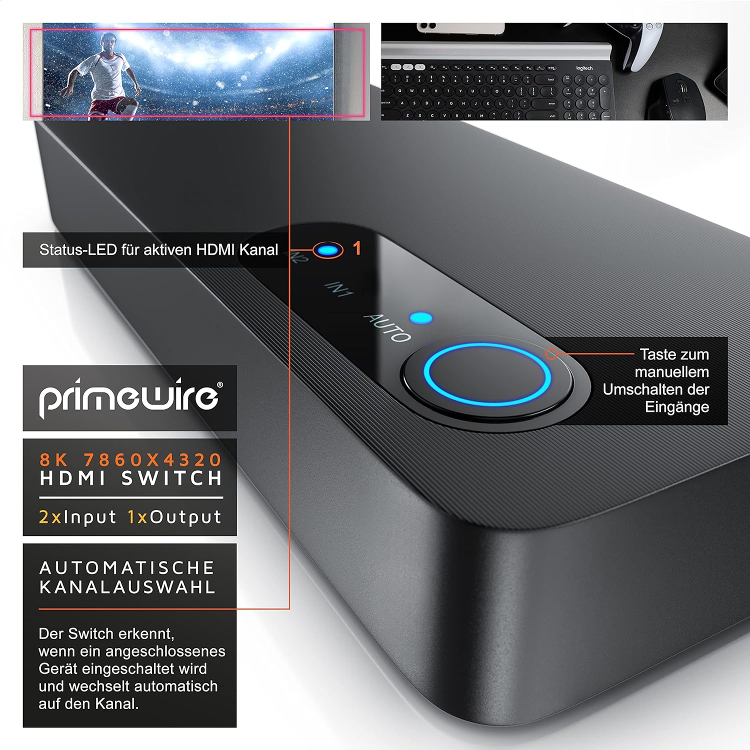- HIGH-END-SWITCH FÜR 8K ULTRA HD II: maximale Auflösung für höchsten Videogenuss. Eine Bildqualität so gut wie in den besten Kinos. Mit dem professionellen 8K HDMI-Switch können Sie an einer HDMI-Schnittstelle 2 Zuspielgeräte anschliessen und das