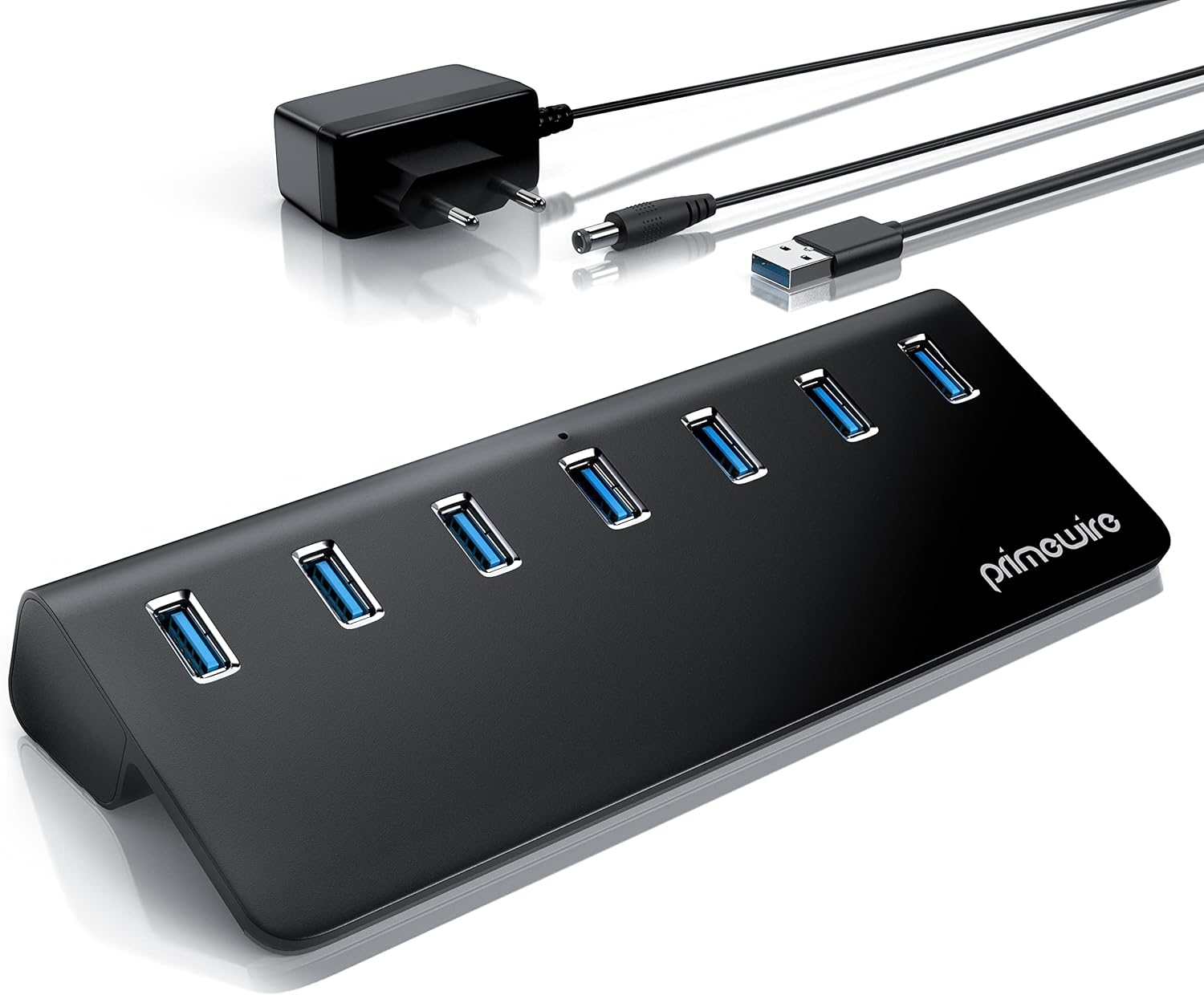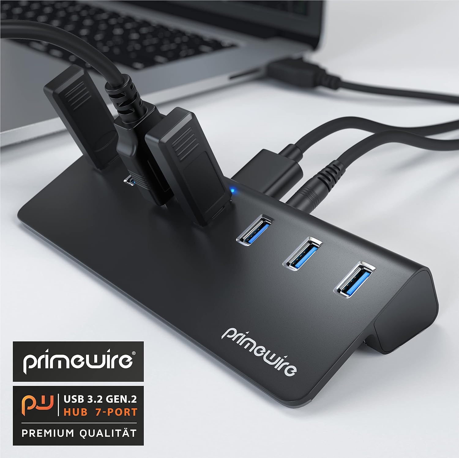 - AKTIVER USB 7-PORT-HUB DER NEUESTEN GENERATION: Der PRIMEWIRE 7 Port Hub erweitert eine einzige USB-Schnittstelle auf insgesamt sieben Steckplätze! Dank USB 3.2 Gen2-Standard (früher 3.1) mit Datentransferraten von bis zu 10 Gbit/s! Ideal für Desktop-PCs, Notebooks und Laptops. Zum Anschluss von USB-Geräten wie Druckern, Scannern, externen Festplatten, Digitalkameras u.v.m. Inklusive umfangreichem Zubehör. | 305713