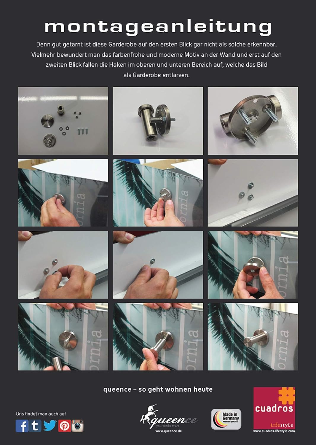 - Mit 6 modernen Design-Haken aus Edelstahl | Selbstmontage