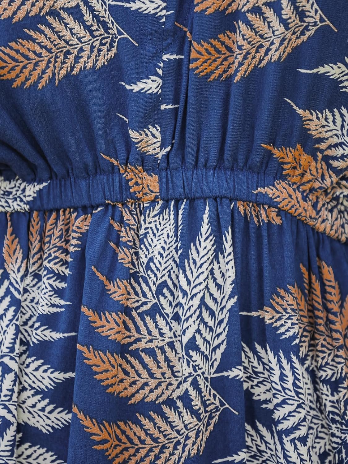 CUPSHE Damen Bikini Cover Up Strandkleid V Ausschnitt Kurzarm Blätter Print Seitenschlitz Sommer Bea