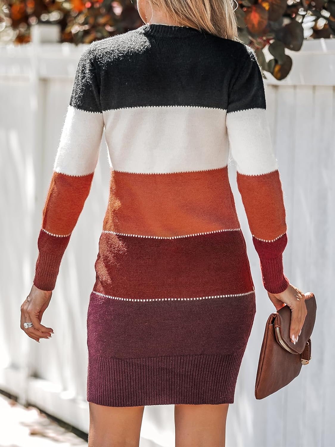 CUPSHE Damen Strickkleid Pulloverkleid Rundhals Langarm Farbblock Pulli Herbst Winter Kleider Bodyco
